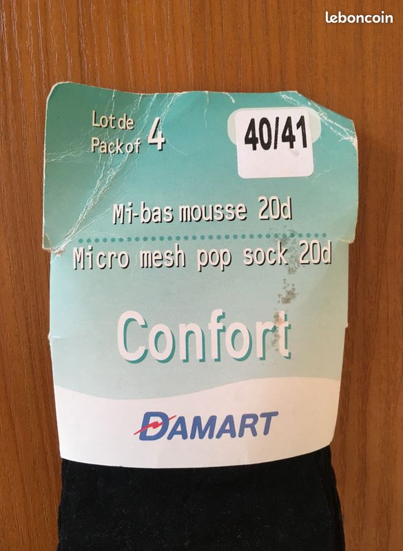 Chaussette - Damart - Lot de 2 paires de mi-bas côte Derby 80% laine... Tailles : Ce produit existe de la taille 36/37 à la taille 40/41., Couleurs : Ce produit existe en Ambre, Biche, Noir. Conseil d'entretien : Il est conseillé de laver votre linge à 30°C. Chaussettes Damart Femme Lot De 4 Paires De Mi-bas Voile 20D - Bas Chaussette En Soie Composition et Entretien 96%;Polyamide|4%;Elasthanne Pour l'entretien, merci de vous référer aux indications figurant sur l'étiquette du produit. Découvrez la gamme de bas , des modèles à petits prix pour sublimer toutes vos tenues Pointes, talons et semelles renforcés. Lot De 9 Paires De Chaussettes Socquettes Assorties Everlast - Noir - - Nu