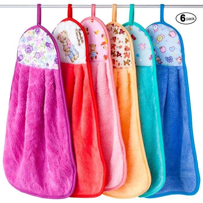 C'est une lingette de cuisine à séchage rapide et facile à entretenir. Velours Corail Absorbant; Conception suspendue; Construction double couche. Question... Matériau sûr et de qualité]-- Le tissu polaire corail de qualité supérieure garantit que la serviette est sûre au toucher, sèche rapidement, douce et confortable. Ultra absorbant, peut absorber l'eau rapidement et sécher les mains rapidement[Beau design]-- La serviette est très mignonne et belle, les couleurs vives et les formes mignonnes correspondent, les enfants seront... Essuie Main Cuisine Lot De 4 Serviettes De Séchage à La Main En Microfibre Avec Boucle Serviettes Mains FHDUSRYO Lot de 4 serviettes de toilette à suspendre en microfibre