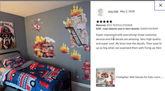 Conseils d'utilisation : Nettoyez et séchez soigneusement la surface. ✓ Favorise la créativité et la soif de connaissances. Facile à nettoyer et à entretenir. Décoration d'armoire ou de porte. Peut être utilisé plusieurs fois. Stickers rond spirales - Autocollant muraux et deco Les enfants apprennent à connaître les différences de manière ludique - Parfait pour la promotion précoce et la transmission des connaissances à l'âge de la maternelle. Carreaux de salle de bain (imperméables). Description du produit Spécifications: Matériau : PVC de haute qualité (0,15 mm d'épaisseur) Couleurs : tons de base rouges avec des accents bleus et jaunes Dimensions : 30 x 20 cm par feuille (4 feuilles au total) Motifs : 7 camions de pompiers, 2 voitures de police, 1 ambulance, 2 hélicoptères Caractéristiques : imperméable, réutilisable Avantages : Facile à installer, sans outils. Stickers Muraux Pompiers Lot De 4 Stickers Muraux Motif Pompiers Pour Chambre D Stickers Pompiers Lot de 2 chaises enfant en bois chambre garçon pompiers Fantasy Fields... Aménagement facile de la pièce sans rénovation : ces autocollants pratiques permettent de transformer rapidement la chambre de votre enfant en un monde passionnant de pompiers. 3 Appliquer à la position souhaitée. Retirez délicatement le film de support. La surface lisse est facile à nettoyer et ne provoque pas d'irritation de la peau - Important pour les tout-petits qui veulent toucher les motifs. Animé Camion De Pompiers Sticker Affiche pour Garçon Chambre Enfant Avertissement De Sûreté non Tableaux d'apprentissage de la maternelle. Décoration de salle de jeux. Domaines d'application : Décoration murale pour chambre d'enfant.