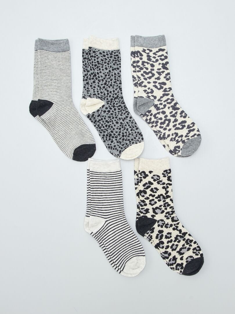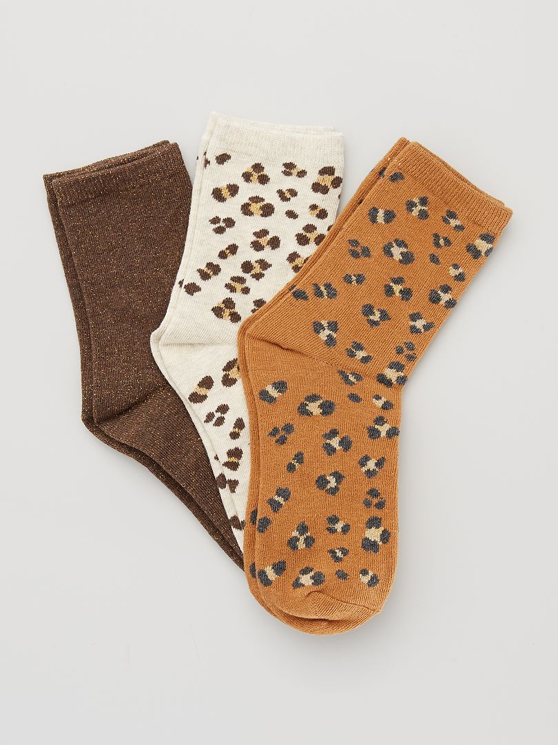 Lot de 5 paires de chaussettes fille · Maille douce et résistante · 2 paires motifs léopard · 2 paires unies avec rayures placées sur la tige · 1 paire à fines... Lot de 5 paires de chaussettes fille 2 paires motifs léopard Chaussette Haute Dentelle VERTBAUDET Lot De 5 Paires De Chaussettes « Léopard » Fille Pour école Loisirs Tendance Lot de 5 paires de chaussettes filleMaille douce et résistante2 paires motifs léopard2 paires unies avec rayures placées sur la tige1 paire à fines rayuresHauts de tige en bord-côtes finition festonnée rehaussée de fils métallisés coloris doréLot de 5 paires de chaussettes en 65% coton, 20% polyamide, 11% polyester, 3% élasthanne, 1% fibres métalliséesConseils d'entretien : température de lavage 40° cycle délicat pas de blanchiments pas de nettoyage à sec ne pas repasser séchage en tambour faible Chaussettes hautes imprimées léopard femme (lot de 5 paires) noir Description :Mode et confort jusqu’au bout des pieds ! 2 paires unies avec rayures placées sur la tige, 1 paire à fines rayures