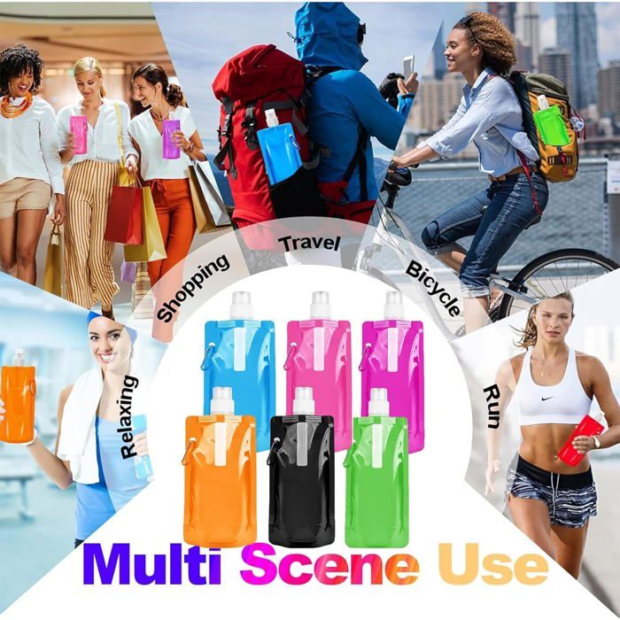 Les sacs pour gourde sont parfaits pour le camping, la randonnée, le vélo, la course à pied, le jogging, le fitness, les colonies de vacances, les voyages et autres activités de plein air. Conception pliable : Le matériau souple et pliable de la gourde permet de la plier ou de l'enrouler pour la vider, ce qui la rend facile à glisser dans votre sac. Facile à transporter : Chaque gourde de voyage est équipée d'un mousqueton en métal qui permet de l'attacher solidement à un sac à dos, un vélo, une ceinture ou tout autre vêtement. Ouverture facile : Dévissez simplement le bouchon pour révéler la large ouvertureNombreuses applications : Cette gourde légère et pliable est idéale pour rester hydraté et rafraîchi en randonnée. Pack de 6 bouteilles d'eau pliables | Shopping C'est une excellente idée cadeau Vous pouvez également la remplir rapidement avec de l'eau du robinet aux différentes fontaines à eau. Yopay Lot de 2 bouteilles d'eau de sport en acier inoxydable 18/8 à paroi simple de 760 ml avec poignée, bouteille d'eau en métal non isolée pour cyclistes, coureurs, randonneurs, amateurs de plage Nombreuses applications : Cette gourde légère et pliable est idéale pour rester hydraté et rafraîchi en randonnée. Pratique et hermétique, elle se ferme hermétiquementFacile à transporter : Chaque gourde de voyage est équipée d'un mousqueton en métal qui permet de l'attacher solidement à un sac à dos, un vélo, une ceinture ou tout autre vêtement. Pratique et hermétique, elle se ferme hermétiquement Bouteille D'eau Réutilisable Sans BPA Lot De 6 Bouteilles D'Eau Pliables - Pliable - Flexible - Bouteille D Gourde Voyage Avec Mousqueton 3PCS Gourde Souple Pour Sac D'hydratation De Course, Idéal pour Le Running, Vélo, Randonnée,Bouteille D'eau Pliable pour · Matières : Matériau:Plastique · Couleur... Ouverture facile : Dévissez simplement le bouchon pour révéler la large ouverture