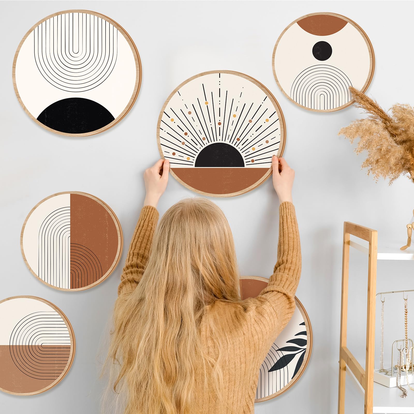 CREATCABIN 5 pièce Décoration Murale Forme Lune à Suspendre Bois Style Bohème avec Autocollants pour Salon,Chambre à Coucher,Maison,Appartement,Bar,Bureau,Ornement Noir Le design botanique apporte une touche de nature à votre salon, moderne et minimaliste, et sert de décoration élégante et sophistiquée pour vous Décoration Murale OT-NVWOZR Lot De 6 Décorations Murales Bohèmes En Bois Panneaux Bois Motifs Botaniques Motifs botaniques : notre décoration murale bohème utilise des couleurs douces et des motifs simples pour créer une atmosphère calme pour vous. Notre décoration murale en bois se compose de 6 panneaux en bois de 3 tailles, avec des diamètres de 15 cm, 20 cm et 25 cm. Elles peuvent être utilisées comme décoration de fête ou de tous les jours et conviennent au salon, à la chambre, au bureau et au bar Contenu de l'emballage : vous recevrez 6 décorations rondes en bois bohème en 3 tailles : grande, moyenne et petite, chacune avec différents motifs et un... Facile à installer et à afficher : la plaque en bois botanique a un crochet triangulaire à l'arrière, vous pouvez l'accrocher directement sur des clous ou des crochets sans autres outils, facile à installer et à enlever. Ces décorations reflètent parfaitement la fusion de la nature et de l'art et apportent la beauté artistique de la nature à la pièce Le style bohème peut être coordonné avec le décor de votre maison et vous pouvez changer son espace décoratif sans trop d'effort Style bohémien Le design de style bohémien avec des couleurs douces, des motifs simples et des impressions claires, peut fournir une décoration élégante et délicate pour votre lieu de travail. Nombreuses utilisations : la décoration murale d'art à suspendre peut facilement s'adapter à tous les styles d'intérieur. Crochets Le dos est équipé de crochets triangulaires, qui peuvent être directement accrochés à des clous ou à des crochets pour faciliter l'installation et le retrait.