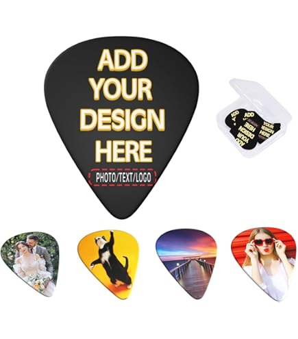 Lot de 6 médiators personnalisés, impression recto verso, cr Cadeau IdéAl Pour Toutes Les Occasions - Nos MéDiators De Guitare ImpriméS PersonnaliséS Sont Les Cadeaux Pour Les MéLomanes, Les Uitaristes Et Les Musiciens, Des Cadeaux IdéAux Pour Toutes Les Occasions Où Vous Souhaitez Offrir Un Cadeau, Comme Un Anniversaire, La FêTe Des PèRes, La FêTe Des MèRes, NoëL, Action De GrâCes, Mariage Mediator Guitare Lot De 6 Médiators Personnalisés Pour Guitare - Ajoutez Votre Propre Pack 6 Médiators Personnalisables Spécification Taille : 0,46 mm 0,71 mm 0,96 mm (mince, moyen, lourd) Caractéristiques : Conception solide, durable et à la mode, facile à utiliser et transporterCadeau : Hommes Femmes Adolescents Guitariste TAILLE : médiators de guitare personnalisés disponibles en 3 tailles différentes au choix, 0,46 mm 0,71 mm 0,96 mm (mince, moyen, lourd), lot de 6, 6 médiators par taille, livrés dans un petit étui en cuir, adaptés aux professionnels , guitaristes intermédiaires et débutants. Lot de 6 en aluminium solide (taille 28x32x1mm), tu peux y faire imprimer une photo, un logo ou un message. Hyper résistants, ils ne cassent pas. Compatibles... Matériau : matériau ABS respectueux de l'environnement, ultra fin, léger, extrêmement durable, confortable au toucher, bord lisse, confortable au toucher, pics lisses, dorez la corde plus facilement et crée moins de frottement. Belle impression claire : l'impression haute définition offre une sensation naturelle et un son chaud. MEILLEUR CADEAU: Offrez à votre bien-aimé un petit quelque chose de spécial qu'il pourra emporter avec lui lors de son prochain concert ou de sa prochaine séance d'entraînement, idéal pour la fête des pères, un anniversaire, un anniversaire, des amis, des couples, un mariage, lorsqu'il offrira des cadeaux, il sera surpris. Ce ne sont pas seulement des médiators de guitare, mais aussi des œuvres d'art.