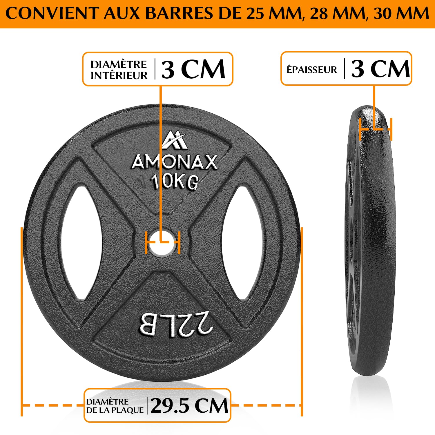 Disques olympique 5 à 25 kg pour séances Powerlifting avec code couleur Poids Musculation 5kg Signature Fitness Lot De Disques De Poids Standard De 454 Kg Comprenant Poids Musculation 10kg Usage : Occasionnel; Matières : Revêtement en plastique Disques remplis de sable et de ciment. Voir le descriptif technique Ensemble de 45,4 kg : paire de 4,5 kg, paire de 6,8 kg et paire de 11,3 kg, 1 barre de 1,5 m Signature Fitness Plaque de poids en fonte pour entraînement de force et d'ha... Fabriqué en vinyle épais rempli de ciment avec un trou central de 2,5 cm qui s'adapte à n'importe quelle barre standard de 2,5 cm de diamètre ou moins Haltère de 2,5 cm de diamètre fabriquée en acier massif de couleurs noires et chromées, 152,4 cm de long est pratique pour toutes les salles de sport et les maisons