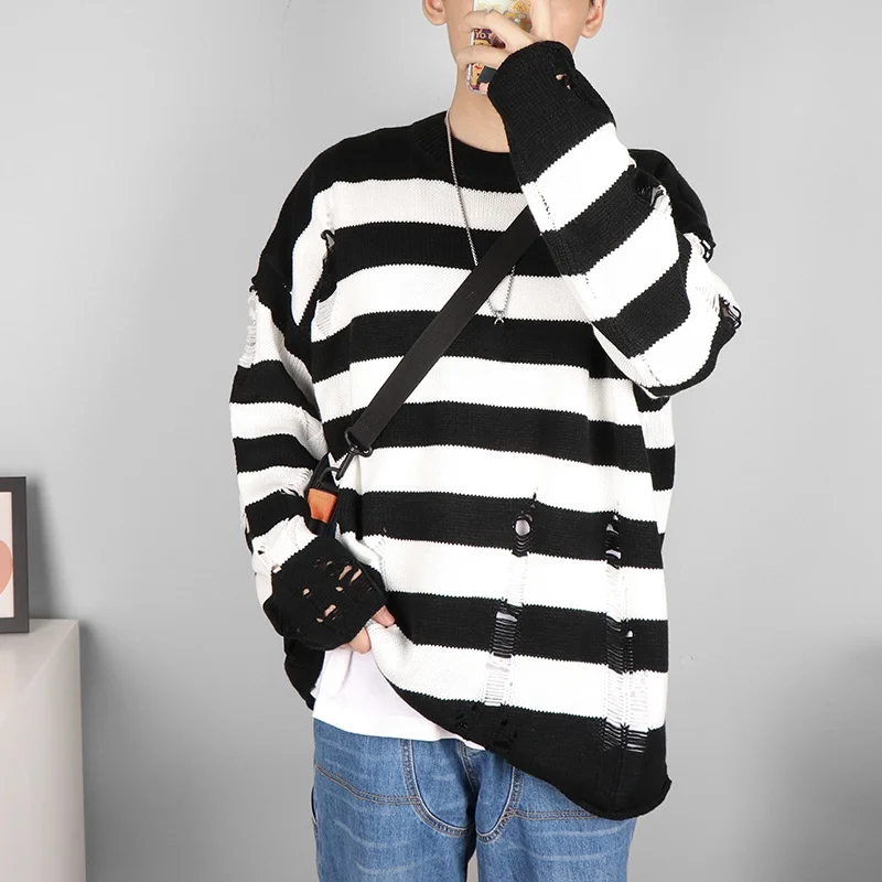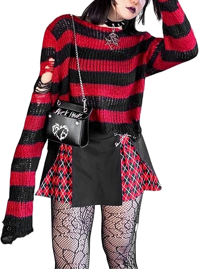 Nouveau automne Punk gothique Long unisexe pull femmes rayé Cool évider trou cassé pull ample Rock mince foncé Streetwear haut Pull Manches Longues Acrylique Trous Loue Ce Pull à Rayures Vintage Unisexe Sur OŪ La Mode Qu'on Loue Style Décontracté Femme Pull à rayures Pull à rayures dégradées pour femme Longueur moyenne Trou cassé Design Hiver Loose Punk Sweater Genre : femme Matière : fibres acryliques Décoration : aucune Longueur des manches : manches longues Longueur : normal Style : décontracté, mode Occasion : décontracté, quotidien Le lavage à la main et le lavage en machine sont corrects ASOS DESIGN - Pull à rayures en maille transparente avec tulle effet... Coupe mi-longue pour une liberté de mouvement optimale - Nombreuses possibilités de combinaison Le design sophistiqué des trous ajoute une touche tendance à votre garde-robe d'hiver
