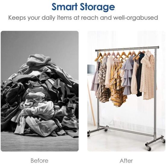 【Réglage en 3 hauteurs et organisateur vertical】Ce portant à vêtements avec réglage de hauteur utilise l'espace vertical optimal(146-158-170cm). Achetez Klyvvo Double Portant a Vetement Solide à Roulettes,Penderie Extensible pour Charge Lourde, Capacité de Charge 200kg, Portant Vêtements Roulettes et... Idéal pour entrée, chambres, dressing, boutiques, magasins de vêtements, stands de vente, marchés aux puces et salons Parfait pour les foyers avec beaucoup de vêtements et peu d'espace. Portant Boutique Dressing Portant à Vêtements Avec Roulettes, Tringle Extensible Pour Charge Lourde Porte Manteau Rangement Vetement Capacite De Charge 100 Kg Argent 87959781 Portant Boutique Démontable Roues Freins Une penderie sur roulette multifonctionnelle 3 étapes: montage & rangement ultra-faciles ! Organise les vêtements efficacement dans la chambre, buanderie ou cellier. 【Montage en 10 minutes sans outils, usage multi-scènes】Ce portant pliable ultra-léger (7 kg) se monte seul sans outils en 10 minutes. Parfait pour locataires, petits espaces, rénovations, camping outdoor, stands de marchés et événements professionnels., Penderie mobile pratique Testé avec plus de 15 blousons en cuir et manteaux d'hiver lourds (10 kg pièce) – il reste absolument stable et mobile Ce portant à vêtements à roulettes inclut des crochets pour suspendre accessoires et des plateaux pour poser chaussures ou petites boîtes. Tatkraft New York, Portant à Vêteents Solide en Acier Inoxydable... 【Extrêmement résistant, stable comme un roc】Ce portant à vêtements solide en acier allié aéronautique avec soudage de haute précision offre une stabilité à 150 kg. Dimensions du produit : (130-191cm)W x 50cmD x (146-170cm)H Charge maximale:150KG Couleur:Argent Klyvvo Portant a Vetement Solide à Roulettes avec Panier à