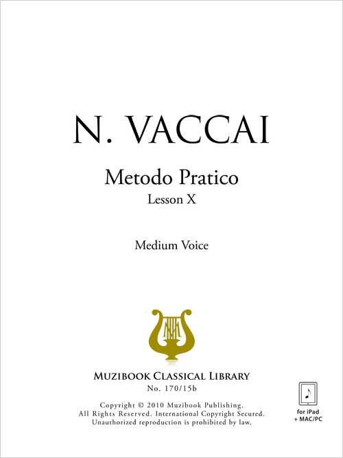 Nicola Vaccai - Partitions gratuites ou libres de droits à Nicola Vaccai: etodo Practico - (Low Voice). Partitions pour Voix... Méthode Chant Nicola Vaccai Nicola Vaccai: Metodo Practico - (Low Voice). Partitions Pour Méthode Pratique Italienne METODO PRACTICO DE CANTO - NICOLA VACCAI - 9788480205825 Voix Basse, voix de basse, mezzosoprano, voix de contralto [English]Nicola Vaccai was born in Tolentino, Italy, on March 15th, 1790 ; he died on August 5th or 6th, 1847, in Pesaro (located on the Adriatic), the town in which he had grown up and to which he Retired en 1844., He Was successful as a singing Teacher and Opera composer, though he was Eclipsed in the Latter Field by his rival, Bellini.