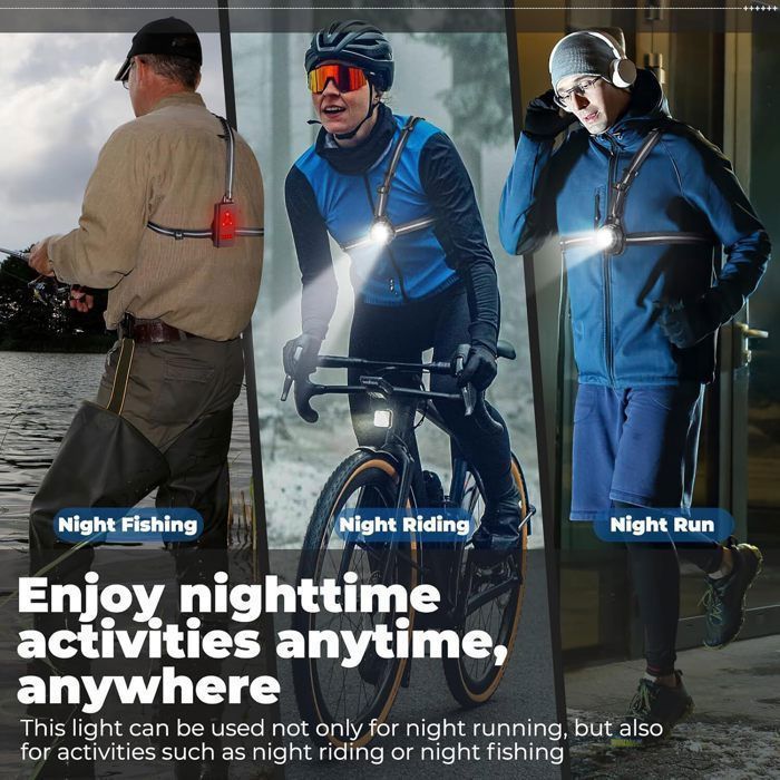 Plus besoin de chercher une batterie de rechange, il suffit de la charger avec le câble de données fourni, ce qui en fait un choix plus respectueux de l'environnement pour plus de coureurs Cette lampe de poche de jogging vous permet de voyager en toute sécurité et en toute sécurité lorsque vous courez tôt le matin Par rapport aux bandes noires traditionnelles, elle améliore votre visibilité et vous rend plus sûre dans l'obscurité. La portée du faisceau lumineux est de 30 mètres, ce qui permet d'éclairer parfaitement le chemin la nuit. Lampe Course à Pied - Lampe De Course à Pied LED Rechargeable Par Usb Pour Poitrine Reglable A 120 500 Lumens Eclairage Avec Bandes Reflechissantes 98634938 Rotation à 180 ° : cette lampe de course peut être inclinée de 90 ° vers le haut ou à 90 ° vers le bas pour répondre aux besoins des coureurs qui courent en montée et en descente. Lumière de course de 800 lumens : est équipée de perles LED de 800 lumens très lumineuses. Luna Sport - Lampe Frontale Led Pour Jogging - Lampe Frontale Led... Étanchéité IPX5 : cette lampe de poitrine de jogging est étanche aux éclaboussures IPX5, de sorte que vous n'avez pas à vous soucier de la pluie et de la transpiration. HONGYEA Lampe de course à pied - Lampe de poitrine rechargeable de type C - 800 lumens - Étanche - Rotation à 180 ° - Bande réfléchissante à 360° - Pour la course, le jogging, la pêche, la randonnée, le camping Bande réfléchissante à 360 ° : notre dernière lumière LED fonctionne avec une bande réfléchissante verte qui réfléchit clairement. Lampe De Poitrine Pour Course à Pied Lumiere Running HONGYEA Lampe Course à Pied, Rechargeable Par USB , Lampes With 500 Lumen Adjustable Beam And Flashing Rear Warning LED, Lampe Pour Jogging,Randonnée Lampe Running Pectorale Lampe Sport Bande Réfléchissante Lampe de course 800 lumens pour le jogging, 2600 mAh, lampe de poitrine pour le jogging, etc. Sacoche de vélo double - Tridimensionnelle - Pour porte-bagages - 35 l Antivol de vélo pliable à combinaison haute sécurité, 85 cm de longueur Antivol pliable pour vélo - Haute sécurité - 85 cm de long Add To Basket Add To Basket Add To Basket Add To Basket Add To Basket Customer Reviews 4.2... Cette lampe de jogging est réglable et équipée d'une boucle à dégagement rapide qui convient à différents types de corps.