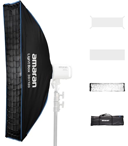 Les boîtes à lumière Amaran sont des boîtes à lumière rectangulaires Bowens Mount de 45x45cm / 60x90cm / 30x120cm à un clic pour les créateurs cherchant à faire ressortir les détails fins des sujets avec des reflets nets et droits. Les caissons lumineux Amaran se replient pour un transport facile et compact, idéal pour les créateurs. Modificateur Lumière Pliable Bowens Boîte à Lumière Amaran 45x45 Carrée Avec Sac De Transport Amaran Cob 45x45 Light Box Aputure Light Dome III boîte à lumière octogonale pliable monture Bowens configuration rapide pour Amaran 300c 150c 60X-S 200X-S · 160,85€. 2 vendus. Aputure... Boîte à lumière la plus compacte de la gamme, la boîte à lumière Amaran 45x45, de forme carrée et compacte, est idéale pour les déplacements, associée à une lampe COB compacte, ou pour les photographes de produits sur table et les vidéastes en gros plan. Amaran Light Box 4545 Vidéo de marchand Design compact et portable Créez une lueur diffuse sur vos sujets grâce à la diffusion incluse ou ajoutez de la profondeur à votre image grâce à la grille de contrôle incluse. Contenu de l'emballage : Grâce à son pliage rapide et son format plat, ce modificateur transforme les LED à source ponctuelle dure en lumière douce. De l'Amaran COB 60d S pour un kit d'éclairage mobile à l'Amaran 300c pour une installation compacte en home studio, ce modificateur offre une flexibilité pour tous les projets créatifs. En tirant simplement sur la poignée de l'anneau de vitesse pour verrouiller, les boîtes à lumière Amaran se fixent à leur forme rectangulaire en une seconde, ce qui rend le montage et le démontage de votre boîte à lumière plus rapides et plus faciles que jamais. Boîte à lumière Boîte à lumière carrée avec monture Bowens, Transforme les LED à source ponctuelle dure comme la série Amaran COB 60 en lumières douces et légères, Dimensions: 45 x 45 cm avec une profondeur de seulement 30 cm, Convient à l'Amaran... 1x Grille de contrôle de la lumière, 1x Sac de transport Sac tout-en-un : La boîte à lumière Amaran 45x45 est livrée avec tous les composants nécessaires pour créer une lumière douce, le tout dans un sac de transport. Installation rapide en un clin d'œil Aputure Light Box 45x45 - Boîte à lumière carré 45x45cm