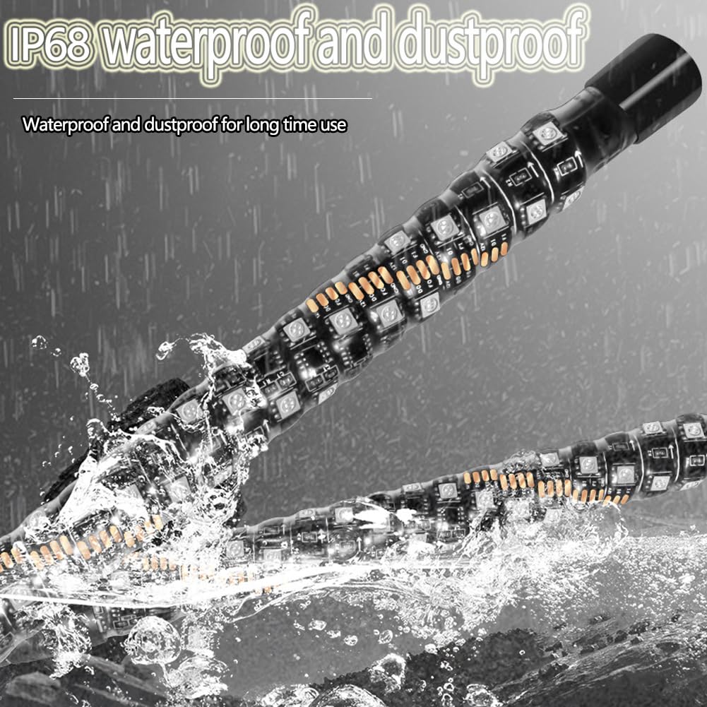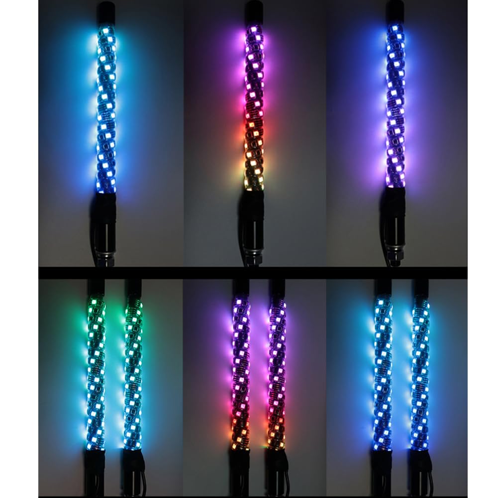 Difference U 1FT 30cm LED Fouet Lumière RGB En Spirale Avertissement Télécommande Conception durable et imperméable: Cette lumière de fouet de LED est conçue pour résister à des conditions atmosphériques dures, avec une estimation imperméable à l'eau IP67, s'assurant qu'il reste fonctionnel même dans la forte pluie ou la neige Lumière Spirale RGB 12V Led Fouet Lumière Antennes Auto 2/3/4ft LED Whip Lights, Télécommande Led Patin A Glace Large application : Convient à la plupart des ATV, Quad, UTV, Dune Buggys, Sand Rails, Mining Rigs, Motorbikes, Snowmobiles, Trucks, All Terrain Vehicles, Go Karts, Golf Carts et Boats. Fouet Lumière à LED pour UTV sont un accessoire tout-terrain populaire qui offre une visibilité et un style supplémentaires à votre véhicule. ANTENNE FOUET AVEC application LED RGB de 3 pieds avec télécommande... Des LED à haute intensité qui offrent des couleurs vibrantes pour que vous puissiez rouler avec style ! Fouet Lumière LED/UTV sont disponibles dans une gamme de couleurs et de motifs, ces fouets changent de couleur et chassent les couleurs, le tout avec une simple pression sur un bouton d'une télécommande sans fil. APPLICATIONS - Les fouets LED universels peuvent être installés dans n'importe quel endroit que vous jugez approprié, ils peuvent être utilisés comme lumière de signalisation, lumière d'avertissement et lumière de poursuite, permettant à ceux qui vous entourent de savoir exactement où vous êtes. et certains viennent même avec des fonctionnalités contrôlées par l'application qui vous permettent de personnaliser les effets d'éclairage.