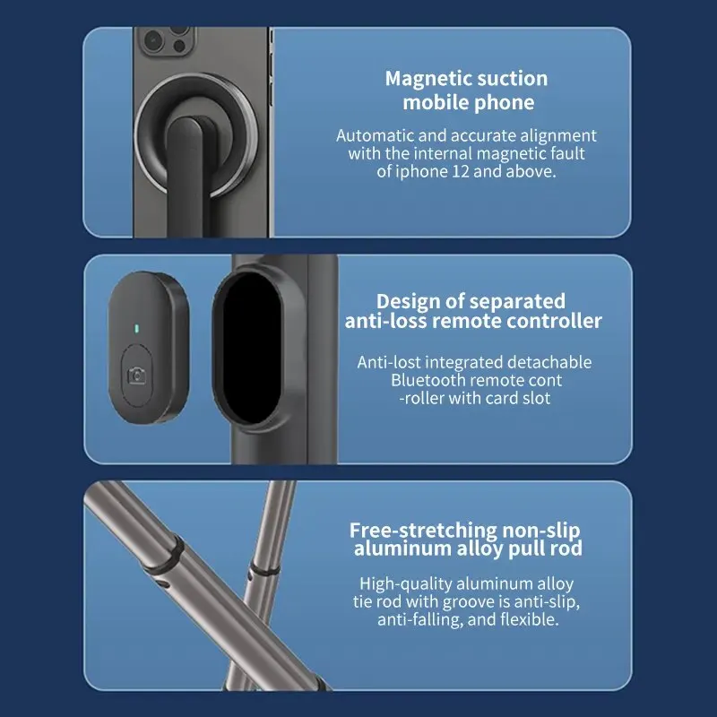 Trou de vis 6,35 mm : trou de filetage de 6,35 mm sur le fond pour s'adapter au trépied standard, largement utilisé lors de la prise de vue ou de la prise de vidéo. Support Smartphone Télécommande Bluetooth FLASH DE STUDIO,Lumière De Remplissage Pour Téléphone Portable LED Pour Trépied Téléphone Avec Lumière Dimensions : 117 x 83 x 40 mm., Poids : 110 g. Le stabilisateur de caméra Bluetooth 2025 MagSafe Selfie Grip permet des prises de vue mains libres via Bluetooth, une stabilité magnétique et une lumière de remplissage réglable-achetez maintenant 1 sangle de téléphone. Pour d'autres téléphones comme Samsung Motolola, vous devez l'utiliser avec l'anneau autocollant en métal. Télécommande Universelle Déclencheur à Distance Bluetooth pour... Contenu de l'emballage : 1 poignée magnétique pour appareil photo. Batterie : 750 mAh (temps de charge complet d'environ 2 heures). (inclus dans le colis) Trépied pour Téléphone Flexible et Extensible 24 Port d'entrée : Type-C. [Compatible avec la lumière de remplissage] --- Doté de 2 températures de couleur blanche et jaune, ainsi que d'une gradation progressive pour garantir que chaque prise de vue est vive et magnifiquement éclairée.