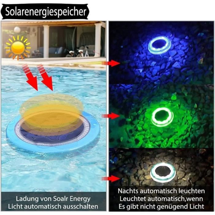 éclairage Piscine Solaire Lumière Solaire Extérieure De Poteau, 2 Lumières Solaires De Chapeau De Lumière Solaire Piscine Lumières de piscine pour piscines hors sol/hors sol, portable, magnétique, étanche IP68, lumière LED rechargeable avec contrôle par application BT, changement de couleur, son/synchronisation de la Adaptabilité complète: Conçu pour les bassins, fontaines et toutes les piscines avec fixation magnétique, montage intuitif sans nécessiter d'outils ou de... Éclairez vos espaces extérieurs avec des lumières solaires pour piscines, conçues pour une utilisation polyvalente au bord des piscines, dans les jardins et les arrière-cours. Ces lumières étanches offrent plusieurs modes et la fonction de changement de couleur, idéales pour décorer vos soirées lors de mariages, fêtes ou sur votre terrasse. Caractéristiques: Nom du produit: feu de piscine solaire Temps d'éclairage continu: 6-12 heures Niveau de protection: IP68 Type de source lumineuse: LED Pouvoir de notation: 1., 5W Tension: 5v Taille du produit: environ 14., 05x8., 95x4., 4cm / 5., 53x3., 52x1,73 pouces Durée de vie: 50000h Liste de colisage: 1 * lumière solaire Note: En raison de différents paramètres d'éclairage et d'écran, la couleur de l'élément peut être légèrement différente de l'image. Description du produit Lumière Solaire pour Piscine Contrôle intelligent : Réglage sans fil de luminosité et couleurs, programmation horaire, synchronisation multi-lumières piscine solaire et télécommande pratique 10 m pour une utilisation intuitive Contrôle de Luminosité Réglable : Illuminez votre piscine avec précision grâce au système RGB 16 couleurs, 4 effets saisissants et un gradateur à 10 niveaux adapté à chaque occasion ou humeur Performance énergétique : Le fonctionnement solaire automatique assure une recharge efficace le jour et un éclairage sous-fiable de longue durée la nuit, réduisant la consommation sans compromettre la luminosité. pscne en bos sem-enterrée | Pool landscapng, Backyard, Above...