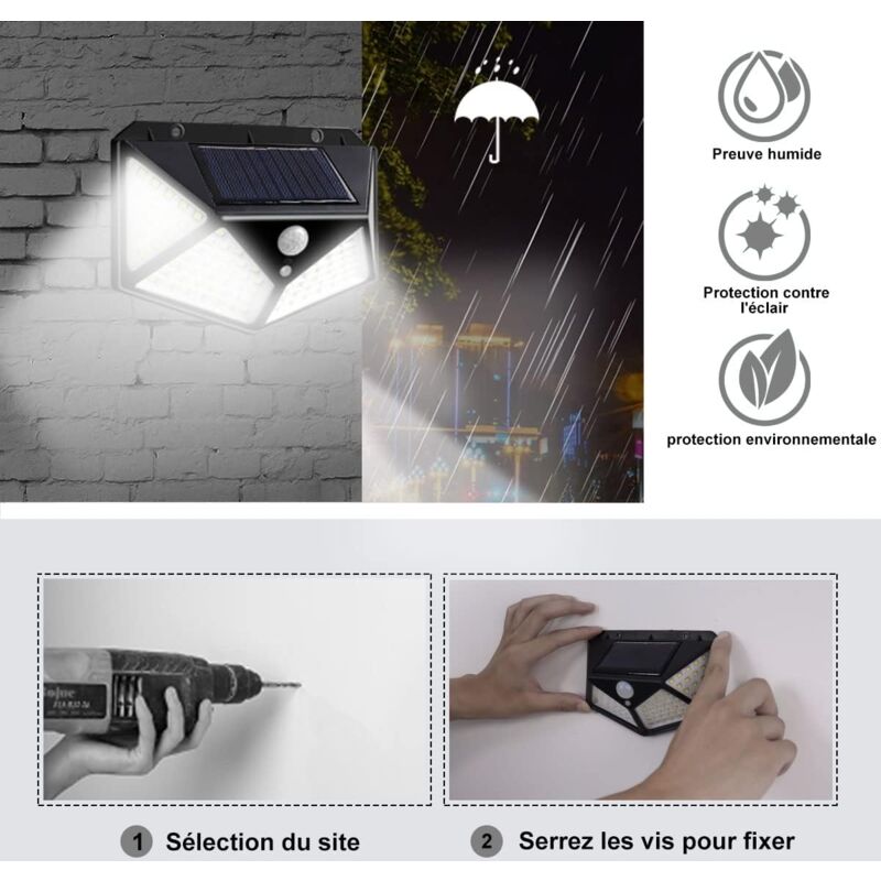 Lot de 2 lampes solaires d'extérieur à clipser avec détecteur de Nombreuses utilisations : Cette lampe solaire à pince est étanche IP65 et résistante aux intempéries. Elle peut être installée sur les murs, les clôtures et... Lampe Solaire Camping Terrasse Luminaire Solaire Clipbarrière Détecteur De Mouvement Lampe Solaire Camping Détecteur Améliorez la sécurité extérieure de votre maison avec des lumières solaires équipées de détecteurs de mouvement, portables et faciles à installer n'importe où autour de votre habitation ou jardin. Leur conception durable assure des performances constantes dans divers environnements tout en utilisant l'énergie solaire pour un fonctionnement écologique. Prise solide et adaptable : Avec leur conception à clip et détecteur de mouvement, ces lampes solaires garantissent l'absence de perçage, délivrant une... Ces lumières LED offrent un éclairage fiable pour les terrasses, arrière-cours, garages, balcons, clôtures, portails, et même pour les sorties de camping, garantissant sécurité et commodité là où c'est nécessaire. Capteur de Mouvement: Doté de trois modes de fonctionnement, incluant l'éclairage à détection de mouvement, l'atténuation après délai, la veilleuse automatique et l'extinction sans mouvement pour un éclairage extérieur personnalisable. Sécurité Optimisée: La fonction de détection de mouvement une en temps réel pour une sécurité renforcée, délivrant un éclairage instantané lors de la détection de mouvement dans vos espaces extérieurs et garantissant une visibilité constante pendant les heures s. Solution Tout Temps : Fabriquées avec des matériABS étanches, résistants à la chaleur et chocs, ces lampes solaires offrent une durabilité face intempéries, garantissant un fonctionnement constant et des options de placement flexible pour divers environnements extérieurs.