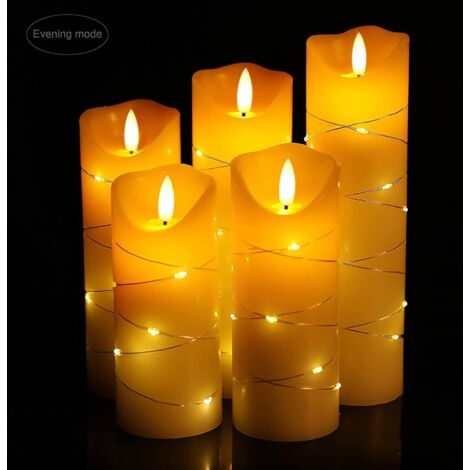 Bougies électriques Sans Flamme Guirlande Lumineuse, Bougie à Piles Avec Télécommande Et Bougies Led Bougies LED CCLIFE Avec Télécommande - Effet Flammes Réaliste Lot de 3 bougies LED en cire véritable avec effet flamme 3D ultra réaliste. Télécommande pour régler l'intensité, le mode flamme et la durée d'allumage. Utilisation... Allumez/éteignez instantanément les bougies, changez les modes d'éclairage, ajustez la luminosité et programmez les fonctions minuterie – le tout sans bouger de votre place. 📱 Guirlande Intégrée & Flamme Réaliste: Chaque bougie premium en acrylique dispose de 15 lumières étoiles intégrées pour un scintillement festif et une flamme 3D réaliste qui imite le vacillement d'une vraie bougie – sans exagération, pour une atmosphère détendue. ✨ Sécurité & Haute Qualité: Nos bougies sans flamme sont fabriquées en acrylique incassable et ABS, durables et offrent une sécurité totale – idéales pour les familles avec enfants ou animaux de compagnie. Profitez d'une ambiance cozy sans flamme nue, sans fumée et sans problème de cire. Sécurité électrique testée. 🔋 Set de Décoration Polyvalent: Contenu: 5 bougies de hauteurs différentes (Ø5cm x 14cm, 14cm, 16cm, 18cm, 20cm), 1 télécommande, 1 notice. Parfaites pour décorer les tables, les lanternes, les mariages, les salles de bain, les fêtes, le jardin ou les occasions festives (Noël, anniversaires). Guirlande Lumineuse Solaire Xxl Avec Effet Flamme Led[H4796...