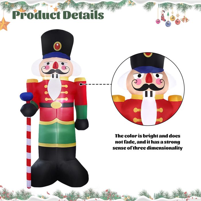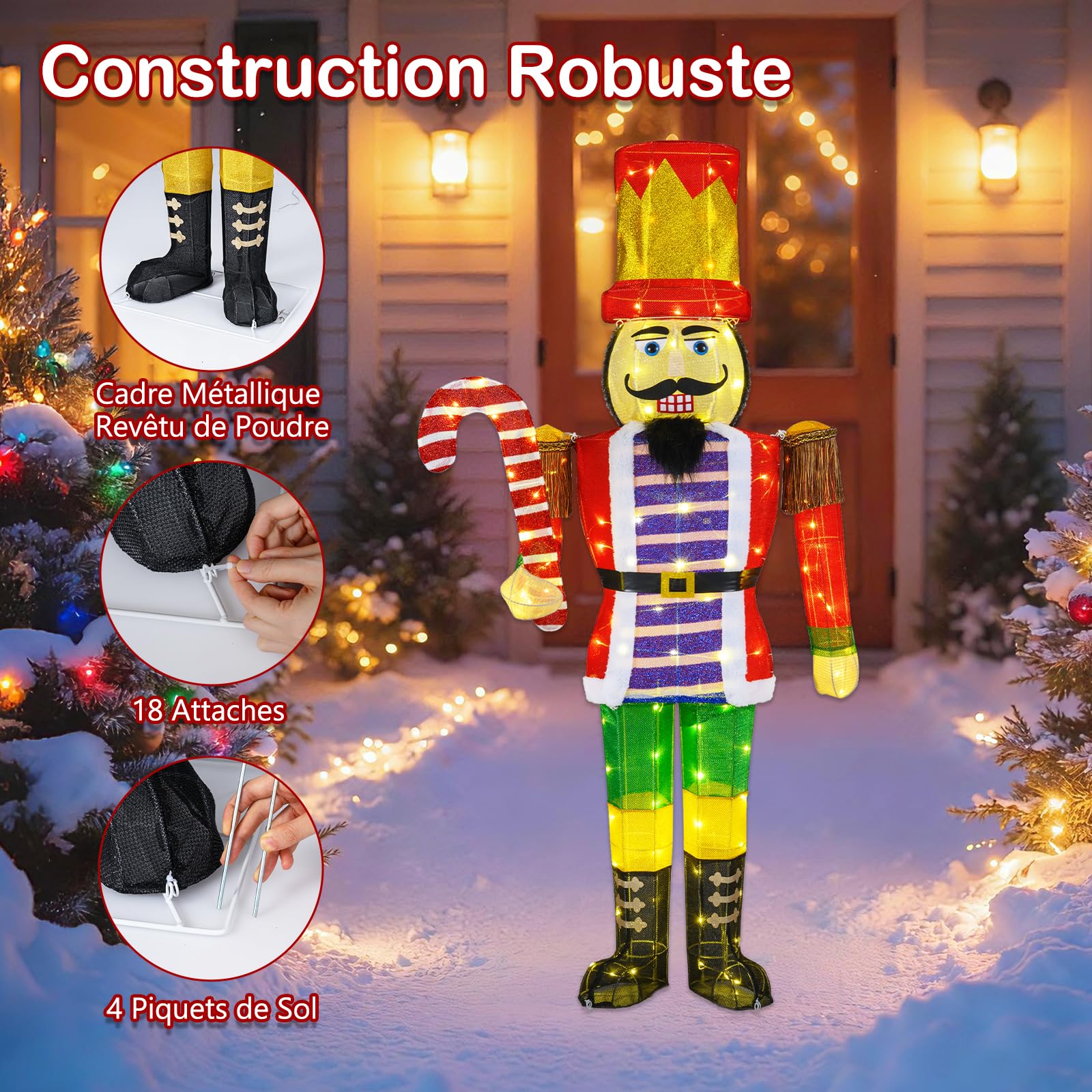 Grâce à son apparence attrayante et à ses lumières LED scintillantes, ce soldat casse-noisettes ajoutera une touche de joie et de lumière à vos soirées. NOEL DECO A SUSPENDRE-SOLDAT CASSE NOISETTE-5PCS Il sera un excellent ajout à votre décoration festive. Casse-noisette Géant LED Lumineuse, Soldat Casse-Noisette Decoration Noel Exterieur Cette figurine géante de casse-noisettes de Noël est un véritable atout pour toutes les occasions, que ce soit pour Noël, des événements, des cérémonies, des fêtes ou des décorations commerciales. Caractéristiques : Créez une atmosphère festive à l'intérieur de votre maison et dans votre jardin Illuminez votre environnement avec les captivantes lumières LED blanc chaud Avec son expression vive, ses couleurs éclatantes et ses détails minutieux, il a un aspect vivant et charmant Équipé d'un socle solide et fixé par 2 piquets de sol, assurant une bonne stabilité Fabriqué en tissu en franges durable et imperméable Fourni avec des attaches à fermeture éclair, fixant chaque partie du soldat en place Parfait pour une utilisation à l'intérieur et à l'extérieur, excellent ajout à votre décoration festive Facile à mettre en place, ne nécessite aucun outil, il suffit de connecter chaque partie Spécifications : Couleur : Jaune + Rouge Matériaux : Tissu en Franges, Métal Dimensions Globales : 31 x 50 x 166 cm (L x l x H) Longueur du Cordon d'Alimentation : 5 m Poids : 3,5 kg Livraisons : 1 x Soldat Casse-Noisettes de Noël 2 x Piquets de Sol 8 x Attaches à Fermeture Éclair 1 x Manuel d’instructions Avertissement De Sûreté Usage restrictions: pour usage extérieur uniquement. COSTWAY Décoration Noel Extérieur Intérieur, 180 cm Roi Casse-Noisette... Aucun outil n'est nécessaire et le cordon d'alimentation est pré-assemblé. Fire risk mitigation: éloigner des matériaux inflammables. Autre décoration pour Noël - Page 2 Handling precaution: éloigner des enfants. Operational caution: débrancher pendant les mauvaises conditions météorologiques. Effet Lumineux Époustouflant : Avec 100 lumières LED de couleur blanc chaud, ce casse-noisette de Noël illuminera votre chemin et ajoutera une ambiance festive. Description du produit Description : Créez une Ambiance Festive Époustouflante pour Votre Fête de Noël ! Facile à Installer : Cette décoration de Noël est facile à assembler grâce à sa structure simple et aux instructions claires fournies.