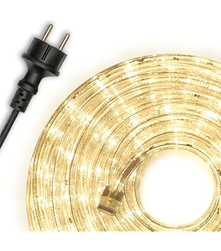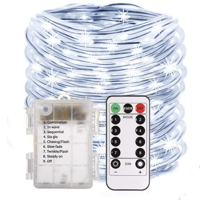 Guirlande Tube lumineux 10m 180 LED extérieur blanc froid Noël Feeric lights & christmas - Décoration Minuterie et personnalisation DIY (façonner soi-même) : Minuterie — 6 heures allumée et 18 heures éteinte. éclairage Extérieur Blanc Froid Guirlande Tube Lumineux LED 20m - 8 Jeux De Lumière -LED Tuyau Bande IP65,Blanc Froid | Leroy Merlin Guirlande Solaire Exterieur Clairance réglable : Cet éclairage de Noël extérieur permet de régler la clairance sur 4 niveaux différents : 25 %, 50 %, 75 % et 100 %. Ce tube LED de 10m (avec 2m de cordon) crée une ambiance trop cool avec ses 8 modes d'éclairage et sa fonction timer. IP20 étanche - tu peux le mettre dehors... Hengda 10 Mètres LED Tube Lumière lumineux. LED Tubes lumineux... De plus, des attaches de câble et des colliers de fixation sont fournis pour le fixer solidement. Il peut être utilisé comme lumière de Noël personnalisée, jouet lumineux DIY, fleurs lumineuses, lumière de jardin extérieure, enseignes au neon, ainsi que pour l'éclairage des voitures et des bars. Il peut être utilisé n'importe où vous l'imaginez. 8 modes pour la chaîne lumineuse extérieure : Le tube LED extérieur propose 8 modes lumineux à choisir : 1., Combinaison, 2., Ondulation, 3., Séquentiel, 4., Clairance progressive, 5., Poursuite/clignotement, 6., Atténuation lente, 7., Pintade (clignotement intermittent), 8., Allumage constant. Le tube lumineux LED extérieur convient parfaitement aux voitures, aux fêtes, au camping, à la décoration de bars, ainsi qu'à la décoration d'Halloween et de Noël. IP67 : Double barrière d'étanchéité à l'eau : Ce tube lumineux LED extérieur est équipé d'une double barrière d'étanchéité à l'eau, qui maximise le sentiment de sécurité !