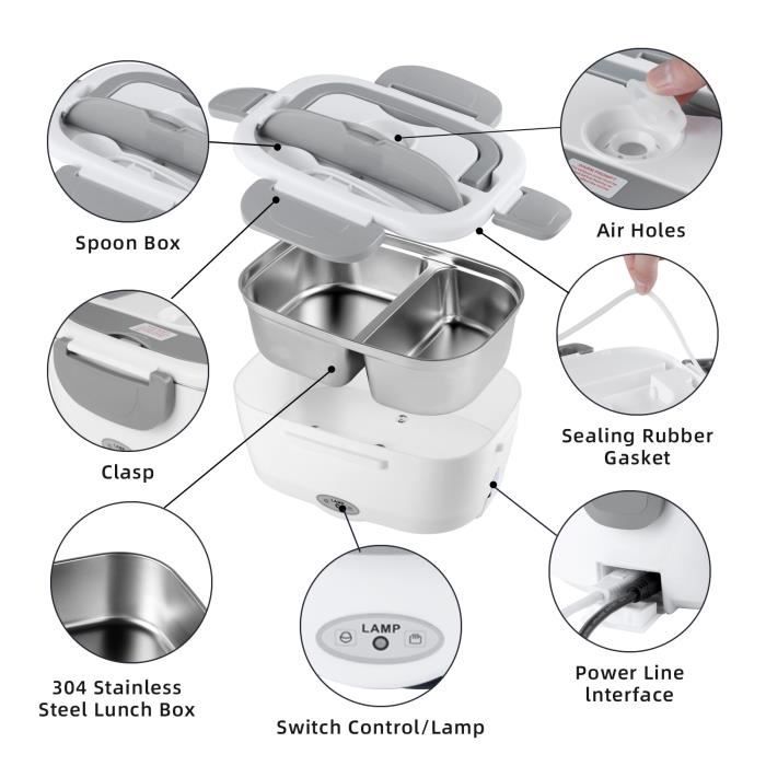 Il est sûr et non toxique, et a une conception scellée pour vous aider à enfermer les odeurs générées lorsque les aliments sont chauffés. 【Facile à nettoyer et à transporter】 : Le récipient amovible est fabriqué en acier inoxydable 304 et est livré avec un couvercle en silicone pour empêcher les aliments de se renverser, il a une poignée portable pour que vous puissiez facilement transporter la nourriture avec vous. 【Warm Gift】 : Nos produits sont parfaits pour les occasions spéciales telles que l'anniversaire, la fête des mères, la fête des pères, l'action de grâce et Noël. En même temps, nous avons une protection anti-brûlure à sec. Gamelle Chauffante De 200W Avec Couverts Et Sac Chauffant Lunch Box Chauffante En Acier Inoxydable 220v Boite Isotherme Repas Chaud Pour Le Bureau Le Pique Nique La Caravane 89990660 Convient pour les repas quotidiens, les bureaux, les écoles, les voyages d'affaires, les voyages, etc. 【Safety Protection】Nos Boite Repas sont équipées de trous de dissipation de chaleur extra-larges, ce qui vous permet de dissiper complètement la chaleur pendant le chauffage et de protéger la sécurité du chauffage. LUNCH BOX,green-Britain plug--Boîte chauffante électrique 220V en acier inoxydable, boîte à... Nous nous efforçons de résoudre le problème immédiatement et de vous satisfaire. La technologie de chauffage à température constante permet de maintenir les aliments à une température adéquate et d'économiser de l'énergie. Remarque : ne pas laver la boîte à lunch externe directement avec de l'eau (vous pouvez l'essuyer avec un chiffon humide). Boite Repas Chauffante électrique Boîte à Lunch Chauffante 60W Boîte à Repas1,6L Lunch Box Chauffante Électrique 1 Lunch Box Chauffante Inox 1.2L Gamelle Chauffante 75W, Lunch Box Chauffante Electrique 12V- 24V- 220V, Gamelle à Lunch 304... Si vous recevez une boîte à bento endommagée qui ne peut pas être chauffée ou rencontrez d'autres problèmes, veuillez nous contacter immédiatement.