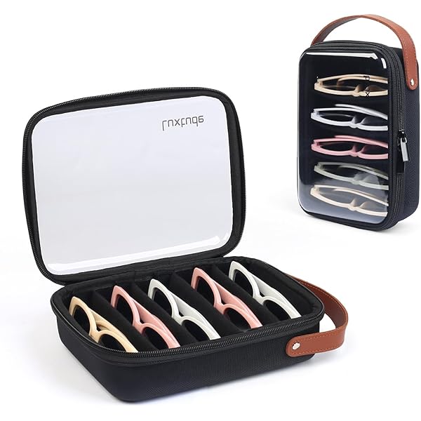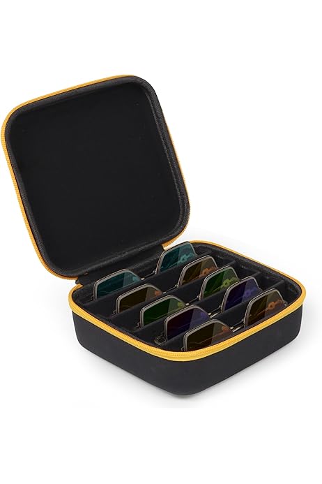 Compartiments réglables : avec 8 emplacements personnalisables, peut accueillir des lunettes (lunettes de soleil, lunettes de lecture, lunettes de vue et plus) de tailles normales jusqu'à 8 paires. Construction durable : extérieur en cuir de qualité supérieure avec coque rigide en EVA pour une protection imperméable et résistante aux chocs. Portable et élégant : dispose d'une poignée en silicone pour un transport facile, ce qui le rend parfait pour les amateurs de lunettes de soleil, les pilotes, les agents de bord et les conducteurs à la recherche d'une solution de rangement de lunettes tendance et pratique. Que vous soyez un voyageur fréquent ou que vous ayez simplement besoin d'un moyen élégant de ranger vos lunettes à la maison, cet étui polyvalent de Fintie est un accessoire indispensable. YID tui de rangement pour lunettes de Présentoir de lunettes de étui de Dimensions du boîtier : 30 x 20,3 x 6,5 cm. Gardez vos lunettes organisées et sécurisées avec cet étui de rangement pratique et élégant. Convient pour une variété de lunettes : l'étui contient des sangles auto-adhésives qui peuvent être utilisées pour fixer la taille des petites lunettes et... Simplifiez le rangement des lunettes de soleil et assortissez-les à toutes les tenues, un cadeau pratique pour la famille et les amis pour les anniversaires ou les vacances comme Thanksgiving, Noël, etc. Avec 8 compartiments réglables, il peut accueillir jusqu'à 8 paires de lunettes, lunettes de soleil, lunettes de lecture, lunettes de sport, etc. Poche intérieure en maille pour ranger des accessoires tels que des montres, des bracelets et des chiffons de nettoyage. Boite A Lunettes Rangement Fintie Etui Lunettes De Soleil, Ultra Léger Et Portable En Boite Lunettes Boîte à thé en Bamboo - Boîte à thé décorative en bois avec 8... Le cadeau parfait : dites adieu au désordre emmêlé.