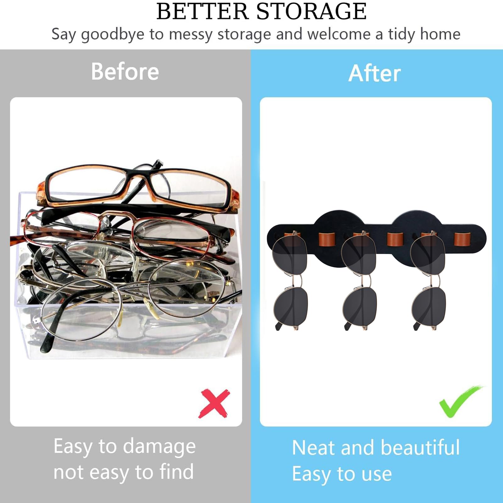 MATÉRIAU : Porte lunettes fabriqué en acrylique de haute qualité avec des bords et des coins arrondis pour une plus grande durabilité, ce qui garantit que vos lunettes sont bien protégées et exposées. INSTALLATION FACILE : Porte-lunettes mur facile à installer, peut être installé en quelques minutes, économise du temps et des efforts, facile à utiliser. Lorsque vous sortez, vous n'avez plus besoin de trouver des lunettes de soleil partout dans la pièce. Il peut être utilisé aussi bien comme porte-lunettes que comme décoration d'intérieur. Support Lunette Range-lunettes Mural Xyuayamz - Acrylique Noir - 6 Compartiments - Gain De Place - Installation Facile Organisation Entrée RANGEMENT DES LUNETTES DE SOLEIL : Rangement lunette mural porte dispose de 6 petits compartiments pour ranger plusieurs lunettes de soleil, il suffit d'accrocher vos lunettes de soleil sur le support lunette, vous pouvez choisir les lunettes de soleil que vous voulez porter plus facilement, garder vos lunettes de soleil propres et belles. Il prend peu de place et peut faire gagner beaucoup d'espace. FINDAAZE 2 PCS Rangeent Lunette de Soleil en Bois Presentoir Lunettes... Il s'agit non seulement d'un outil de rangement pour les lunettes, mais aussi d'une décoration d'intérieur, à la fois pratique et à la mode. Facile à monter Le porte-lunettes de soleil est facile à installer, il permet d'économiser du temps et des efforts et est simple à utiliser. L'emballage est livré avec des accessoires de montage à vis, puis fixez-le à l'endroit de votre choix. Décoration Intérieure Minimaliste Rangement Support à Lunettes Mural, Présentoir à Lunettes Mural Métal Chromé Support Acrylique Mural Présentoir de lunettes fixé au mur acrylique porte... – Grandado SIMPLE ET ÉLÉGANT : Porte lunettes aspect simple et généreux, convenant à une variété de styles de décoration intérieure.