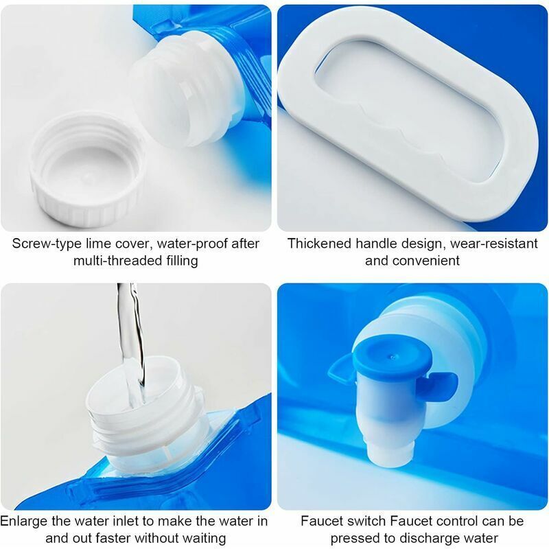 Le sac à eau peut être réutilisable pendant une longue période. Réservoir Eau 10L 5L Sans BPA Luxiremi Bidon D'eau Potable Pliable De 10 L + 5 L - Pour Camping Réservoir Eau 10L 5L Sans BPA étanche Spécifications: Matériau : polyéthylène., Couleur : bleu. Se replient à plat lorsqu'ils sont vides pour un rangement pratique. Compact et léger, ces sacs d'hydratation peuvent contenir beaucoup d'eau. Polyvalents, ils conviennent également au stockage de boissons comme la bière, le vin, le jus, etc Matériau respectueux de l'environnement : les réservoirs d'eau de camping sont fabriqués en plastique respectueux de l'environnement, sans BPA, sans PVC, non toxique, flexible, sûr pour la rétention d'eau et n'affecte pas la qualité de l'eau. Sa transparence vous permet délibérément de niveau d'eau. Bidon d'eau 10L repliable en plastique alimentaire pour Camping et... Précautions d'emploi : 1., Assurez-vous toujours que la fermeture est bien fermée pour éviter les fuites, en particulier pendant le mouvement., 2., Évitez tout contact direct avec des objets tranchants qui pourraient percer le sac., 3., Lors de l'utilisation avec des liquides chauds, agissez avec précaution pour éviter les brûlures. Avantages de l'utilisation de nos bidons de stockage d'eau de camping : 1., Efficacité de l'espace : maximise l'efficacité de stockage dans votre sac à dos, idéal pour minimiser le poids des bagages avec une capacité d'eau maximale. Pliable et portable : 2 tailles dans le paquet, 10 l et 5 l, vous pouvez avoir les deux en même temps. Bidon D'eau Avec Robinet Réservoir D'eau Potable Avec Robinet Conteneur D'eau Pour Camping Randonnee Pique Nique Voyages Barbecue La poignée de transport intégrée augmente la portabilité et la facilité d'utilisation, en particulier lorsque le récipient est plein., 3., Polyvalence de la température : convient aux liquides chauds et froids, ce qui le rend utile pour une variété d'activités de plein air, de l'eau chaude à la préparation du café au refroidissement des boissons lors des excursions d'été., Instructions d'utilisation : 1., Remplissez le récipient avec de l'eau et veillez à ne pas dépasser la marque de remplissage pour permettre l'expansion, en particulier lors du stockage de l'eau chaude ou congelée., 2., Pour une utilisation comme pack de glace, ne remplissez pas le récipient plus de 3/4 pour éviter l'éclatement lors du gel. Vous pouvez l'enrouler pour un rangement et un transport faciles.