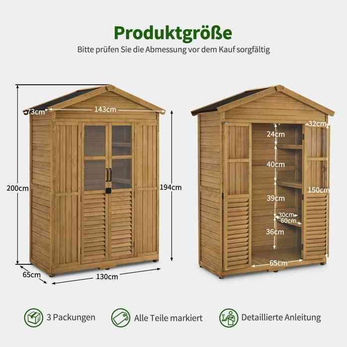 Abris De Jardin Bois M MCombo Armoire De Jardin En Bois Résistant Aux Intempéries, Petit Armoir Exterieur En Bois Armoire de jardin/terrasse 361 | 1,3 m² | Aspect brut | 14 mm d'épaisseur - - Piscines bois, abris de jardin et aménagements extérieurs FSTUDIO Table de jardin résistante aux intepéries 48 c, table de... 2 fenêtres transparentes fournir plus de soleil 8 raidisseurs en métal offrent une durée de vie plus longue 2 sécurités anti-basculement empêchent le basculement de l'armoire 2 loqueteaux magnétiques assurent une fermeture solide 1 Loqueteau magnétique 2 Fenêtre 3 Raidisseurs 4 Sécurité anti-basculement Dimensions totales : 59 x 127 x 168 cm Assemblage et service : la numérotation claire des pièces et les instructions détaillées facilitent l'assemblage ; le produit est emballé dans deux paquets Stabilité et durabilité : fabriquée en bois de sapin certifié FSC de haute qualité et renforcé avec des plaques de fer sur les côtés et à l'arrière, la maison en bois est extrêmement robuste et durable ; quatre pieds réglables en hauteur compensent les irrégularités du sol