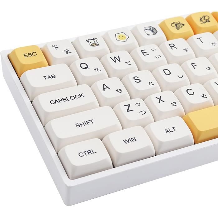 Touches Clavier Japonaises Pbt 130 Keys Keycaps De Clavier Mécanique Keycaps De Clavier PBT Keycaps Mécaniques Jeu 110 Touches Compatible ANSI Large sélection de touches : se compose de 130 touches qui s'adaptent à 90 % des claviers mécaniques et optiques 61/87/104/108, ainsi que tout interrupteur à clé avec un axe en croix, un bon choix pour vous permettre de bricoler votre clavier mécanique GBrosLeimen-Capuchons de clavier personnalisés, 129 prédire, PBT, DYE Confortable : les touches japonaises noires au profil Cherry offrent une disposition ergonomique pour une sensation d'écriture confortable et durable Capuchons de clavier - HURRISE - PBT Sublimation 5 faces - 71 touches... Touches noires et violettes : avec leur design simple, les touches japonaises violettes donnent à votre clavier un look mystique et élégant avec un caractère nostalgique Haute qualité : les touches noires et violettes sont fabriquées en matériau PBT de haute qualité et imprimées avec une technologie de sublimation avancée. Ils sont agréables au toucher, résistants à l'usure et à la graisse – ne se rayent pas et ne se décolorent pas facilement Haute compatibilité : le jeu de touches japonais contient 130 touches et est compatible avec les claviers mécaniques ANSI 61/64/68/84/87/96/98/100/104/108 ANSI US - Idéal pour les personnalisations de clavier personnalisées