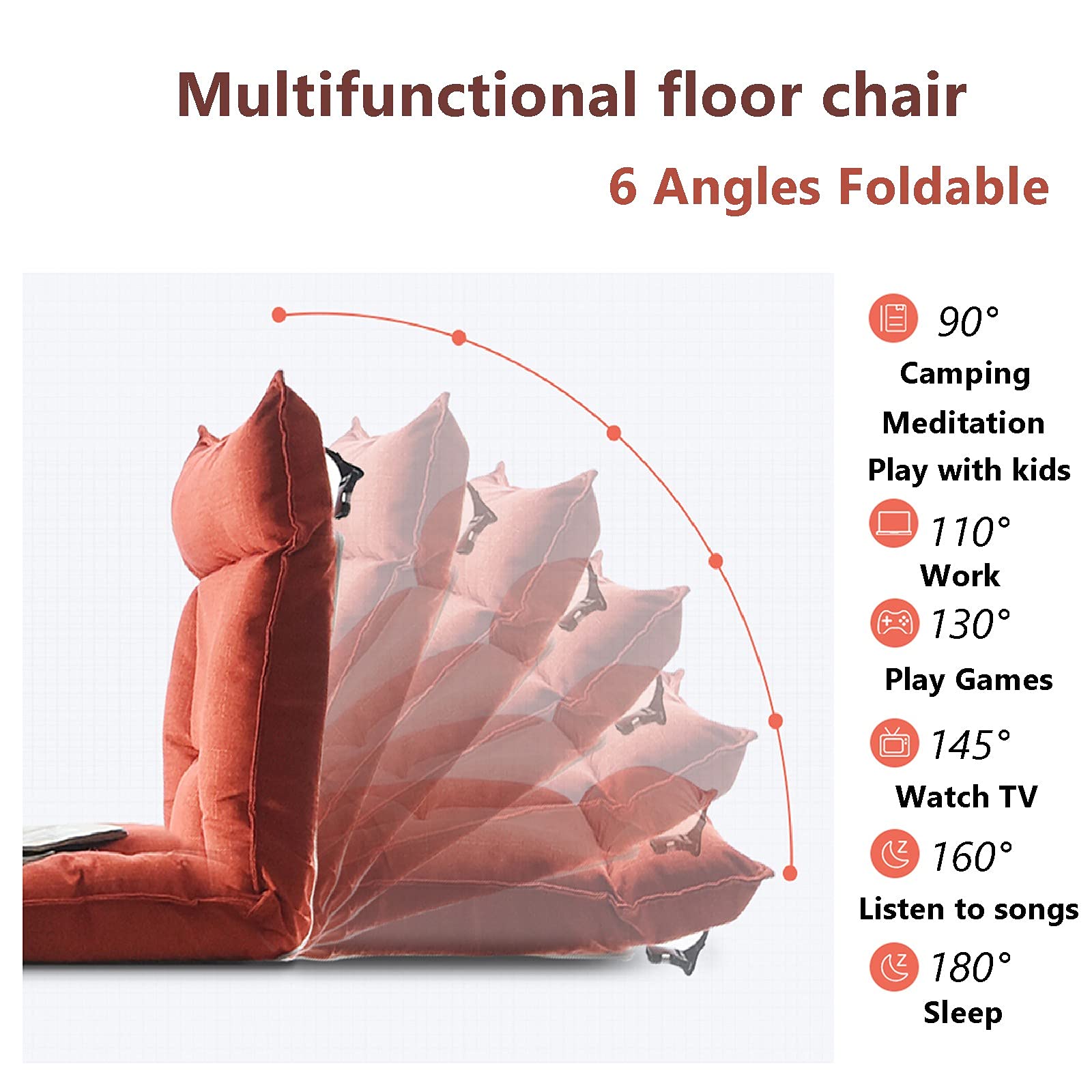 Notre chaise longue inclinable vous aidera à vous détendre et à profiter de moments de calme, ce siège de sol peut être utilisé dans de nombreux endroits, tels que les salons, les balcons, les salles d'étude, les salles de yoga et les chambres. Chaise De Sol Pliable Dossier Canapé-lit Pliable Chaise De Méditation Avec 14 Positions Réglables En Métal Et Éponge, 56x67x56cm, 6 Couleurs Au Choix Fauteuil Sol Rembourre Meditation Nom du produit : chaise pliante avec dossier Couleur : gris, bleu. 6 Postures Réglables : la chaise pliante avec un dossier réglable sur 6 positions différentes selon vos préférences qui utilise une technologie de verrouillage métallique unique qui peut être facilement ajustée, vous permettant de trouver la position idéale pour un maximum de confort Que vous l'utilisiez comme chaise de lecture, siège au sol ou chaise de méditation, cette chaise fournit le soutien nécessaire pour de longues heures d'assise, vous assurant de rester détendu et confortable. Housse amovible de qualité supérieure pour un nettoyage facile : cette chaise japonaise est livrée avec un fond en nylon facile à nettoyer, ce qui aide à utiliser la chaise aussi bien à l'intérieur qu'à l'extérieur. Mophorn Chaise de sol pliante avec mousse recyclée, dotée de 14... 6 Postures Réglables : la chaise pliante avec un dossier réglable sur 6 positions différentes selon vos préférences qui utilise une technologie de verrouillage métallique unique qui peut être facilement ajustée, vous permettant de trouver la position idéale pour un maximum de confort. Dimensions du produit : 41 x 40 x 41 cm Poids de l'article : 2500 g. La housse de chaise est complètement amovible, lavable en machine, et fabriquée en tissu de lin respirant, de sorte que vous pouvez facilement la nettoyer après utilisation., Très élégant Dossier de lit - Coloré - Angle réglable - Soutien dorsal - Pliant 1 manuel d'utilisation (français non garanti). Dimensions du produit : 41 x 40 x 41 cm.