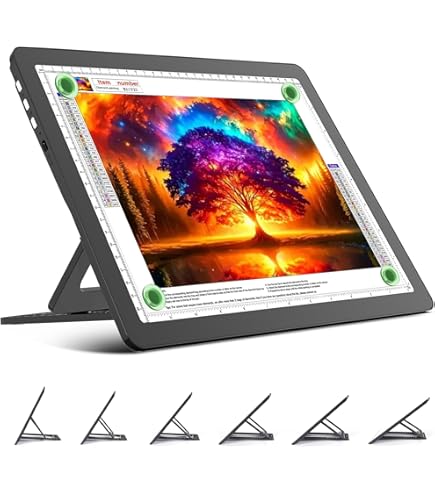Tablette Lumineuse A3 Sponake Support En Métal A3-9 Angles Réglables - Antidérapant Support Antidérapant Peinture Diamant Idéal pour la peinture diamant : notre support de coussin lumineux est conçu pour la peinture avec des diamants pour adultes afin de soulager les douleurs cervicales raides et de protéger la colonne cervicale Support D'Ordinateur Portable En Métal Pliant Support Fixe En Alliage (Seul un support, le coussin lumineux n'est pas inclus) Spécifications : · Convient aux ordinateurs portables, iPad, tablettes, ordinateurs portables, caissons lumineux A3, tableaux à croquis et plus encore. · Matériel... Matériau de haute qualité : support en métal robuste, longue durée de vie, compatible avec boîte à lumière A4, tableau à croquis, ordinateur portable, etc. Convient pour : bloc lumineux A3/B4/boîte à lumière A3/B4/ordinateur portable/table., Poids approximatif : 640 g. Idéal pour la peinture diamant : notre support de coussin lumineux est conçu pour la peinture avec des diamants pour adultes afin de soulager les douleurs cervicales raides et de protéger la colonne cervicale. Caractéristiques : construction pliable / 9 angles réglables.