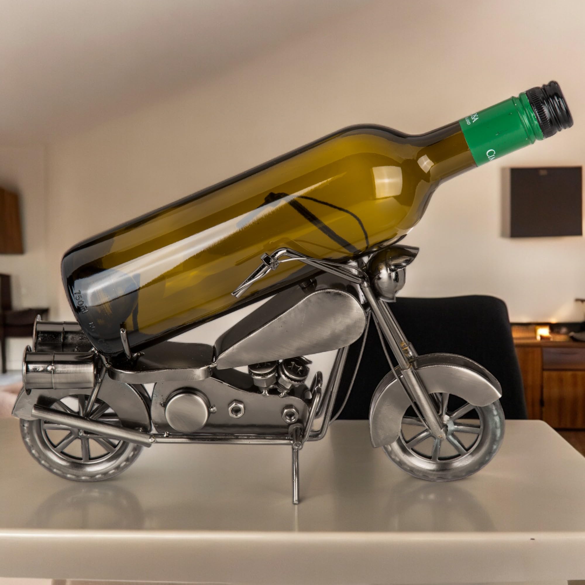 Porte Bouteille Vin Original Porte Bouteille Métal Décor Moto, Gamme Forgeron Meuble Bouteille Une paire de sculptures porte-bouteilles moderne sur une moto en m tal est une bonne id e de cadeau pour un anniversaire, un barbecue, un mariage, un cadeau sp cial pour les hommes et bien d'autres occasions Porte-bouteille Vin Décoration Bar Porte-bouteille Métal Moto Axel Gris - Flora Déco - Vin - Idée Cadeau Porte-bouteille Style Moto Rétro Décoration Découvrez chez MIJOMA la combinaison magique de fonctionnalité et de style, capturée dans notre collection exclusive de porte-bouteilles métalliques au design moto. Dimensions pour la diversité, idéal comme cadeau ou pour se faire plaisir. Porte-bouteille en métal style moto : rétro, café racer, bobber, chopper, vintage & classique - porte-bouteille de vin pour motards (motards vintage) · Commander... Avec six modèles séduisants – du look rétro élégant au joyeux Cafe Racer, au style Bobber rugueux, au design puissant Chopper en passant par le vintage intemporel et le classique majestueux – chaque pièce apporte un peu de passion et de caractère à votre maison ou votre bureau. Chaque pièce de cette collection raconte sa propre histoire, des chemins poussiéreux de la moto rétro au chrome brillant du classique. Connexion par design : chaque pièce est un pont à l'époque où les motos étaient plus que des véhicules - ils étaient des symboles de personnalité. Un style pour chaque âme : plongez dans le monde du rétro au classique et trouvez le porte-bouteille qui non seulement votre
