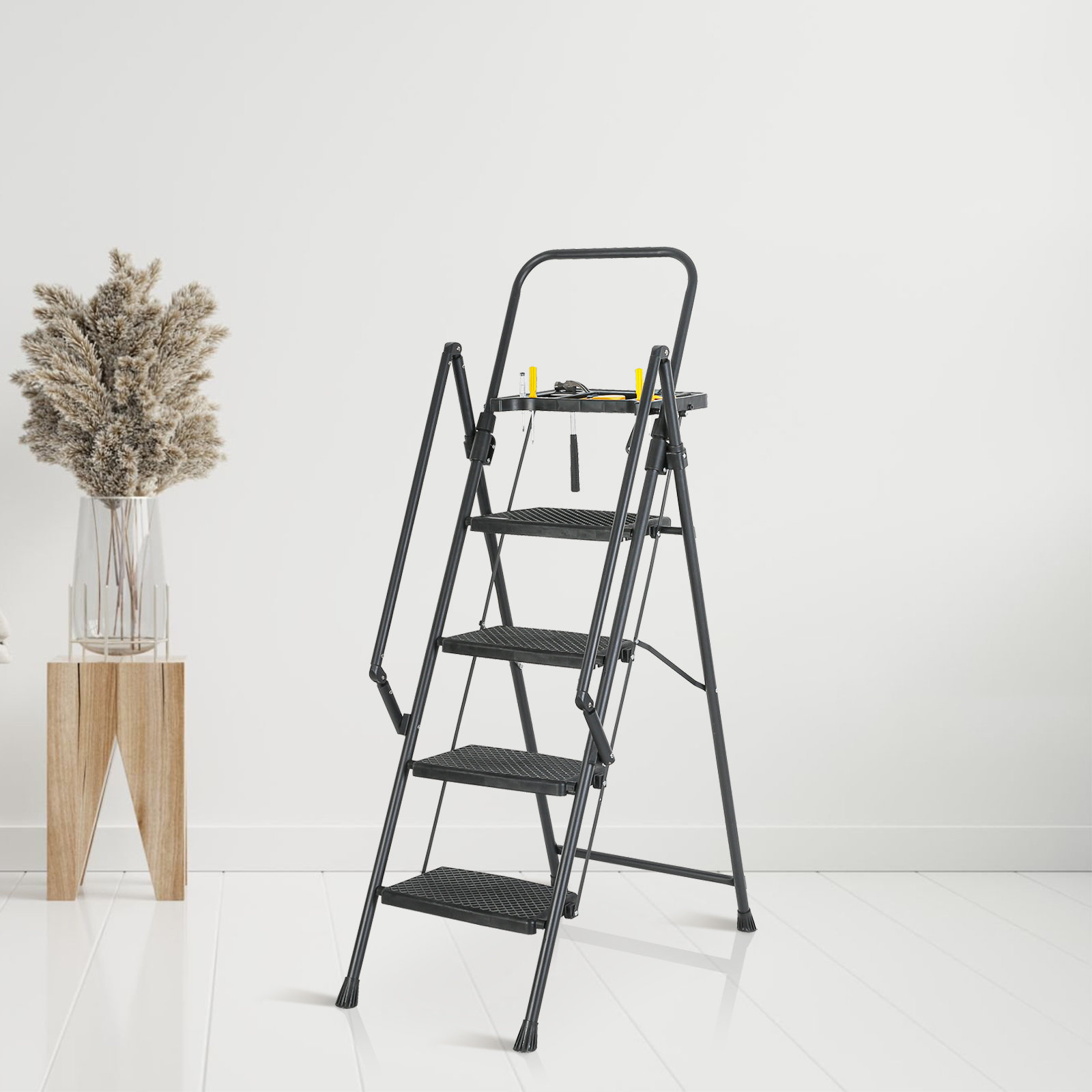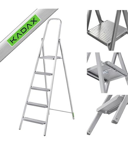 échelle Avec Plateau Porte-outils COSTWAY Escabeau Métallique 5 Marches Avec Plateau Porte-Outils Escabeau 5 Marches Professionnel Escabeau sécurisé 5 marches avec garde corps | Contact PROVOST KINGRACK Escabeau à 3 marches robuste avec main courante, pédales... Doté d'un plateau porte-outils pratique pour garder vos outils et matériaux à portée de main, cet escabeau rend les tâches comme le nettoyage des fenêtres, le changement d'ampoules ou la récupération d'objets en hauteur plus sûres et simples. Son design pliable peu encombrant facilite le rangement et le transport. La structure métallique solide garantit une fiabilité pour diverses tâches domestiques et professionnelles. Description : Découvrez l'alliance parfaite de la solidité et de la praticité avec cet escabeau en métal robuste. Ce design fonctionnel permet un accès facile aux outils, améliorant ainsi l'efficacité durant le travail en hauteur. 【Sécurité renforcée】Poignée en EVA antidérapante, larges pédales texturées et patins antidérapants assurent une stabilité maximale et une sécurité accrue pour une utilisation aisée. 【Design pliable rapide】Cet escabeau portable se plie rapidement et de manière compacte lorsqu'il n'est pas utilisé, facilitant le rangement et le transport où que vous soyez. COSTWAY Marchepied à 2 Marches Pliable, Escabeau Cadre Métallique...