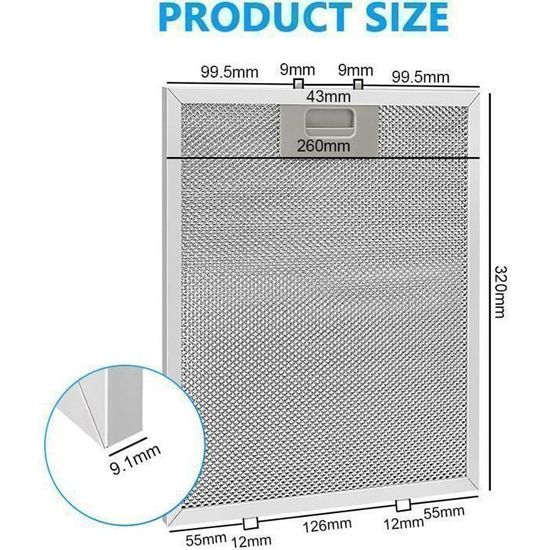 Lot de 2 filtres à graisse en métal pour hotte aspirante 320 x 260 mm Novy filtre (filtre à huile) hotte aspirante 5638010a • Vérifié original produit • Filtre graisse en métal • Pour une filtration optimale de la vapeur de cuisson • Facile à enlever et à maintenir propre (lavable au lave-vaisselle) • Dimensions: 24,7 x 24 Commandez facilement votre pièce ou accessoire Filtre pour hotte aspirante sur . Plus de 10.000.000 de produits: tout... Filtre Hotte De Cuisine Remplacement Activité-1 Filtre à Graisse Métallique Pour Hotte Aspirante 300 X 250 Filtre à Graisse Aluminium Lavable Filtre à 5 Couches La taille et la conception appropriées de ce filtre à graisse pour hotte de cuisinière conviennent à la plupart des marques de hottes de cuisinière Ce filtre de hotte de cuisinière peut être facilement nettoyé au lave-vaisselle pour assurer un nettoyage hygiénique en profondeur La hotte filtrante est spécialement conçue pour être facilement remplacée sans outils, ce qui facilite l'entretien de votre hotte Sa structure robuste assure une longue durée de vie Set de 3 filtres à graisse métalliques 320x260mm - aluminium - anti-graisse - lavables, maille, accessoire pour hotte aspirante · Commander et payer via... Haute Qualité: Ce filtre de hotte de cuisinière est fabriqué en alliage d'aluminium de haute qualité et est conçu pour la durabilité. 5 Couches De Graisse Aluminisée: Ce filtre à graisse pour hotte de cuisinière a une conception de filtration à 5 couches pour assurer une filtration de première classe et capturer efficacement la graisse pour assurer un environnement de cuisine propre Afin de maintenir les performances de la hotte, il est recommandé de remplacer le filtre tous les 6 mois Facile à Utiliser: Le filtre a une poignée facile à retirer et à insérer, très pratique à installer et à utiliser, facile à nettoyer et peut être nettoyé à l'eau chaude ou avec un dissolvant de graisse