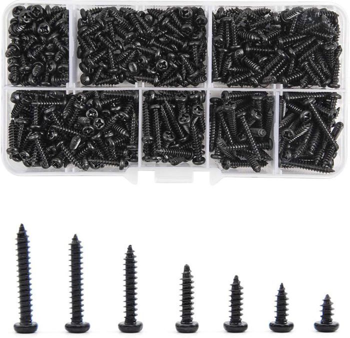 Kit d'assortiment de petites vis pour ordinateur, 860 pièces -Notre jeu de vis est compatible avec tous les ordinateurs portables et ordinateurs universels. Kit Vis Avec Tournevis Pour Lunettes Kit De Vis Ordinateur M2 M1.2 M1.4 Vis Autotaraudeuses En Kit De Vis Pour Ordinateur -Les vis autotaraudeuses sont faciles à pénétrer dans divers matériaux, vous pouvez les utiliser pour les plastiques, le bois, les carreaux de céramique, le ciment et d'autres matériaux. Matériaux de qualité : les petites vis sont fabriquées en acier au carbone de haute qualité, qui n'est pas facile à casser et à plier, ont une forte dureté... VIS,100pcs M1.7-10mm--Vis à bois autotaraudeuses à tête ronde Phillips... Haute qualité : le jeu de vis pour ordinateur portable est fabriqué en acier au carbone, avec finition en oxyde noir, filetage profond et transparent sans bavure, résistant à la rouille et à la corrosion même dans un environnement humide. Peu importe la longueur du filetage, il ne se déformera pas. Rangement pratique : ce kit de remplacement de vis pour ordinateur est bien emballé et assorti dans une boîte en plastique, sans souci de dommages ou de désordre. Caractéristiques : -Nos vis pour ordinateur portable sont fabriquées en acier au carbone, l'ensemble comprend 16 types de vis couramment utilisées dans les ordinateurs portables. Taille : 500 pièces vis autotaraudeuses à tête cruciforme, M2 x 3 mm/4 mm/5 mm/6 mm/8 mm/10 mm, M1,4 x 2 mm/3 mm/3,5 mm/4 mm/5 mm/6 mm, M1,2 x 3 mm/3,5 mm/4 mm/5 mm, Disponible en 16 tailles différentes. Le petit kit de vis est très approprié pour réparer les vis endommagées ou manquantes sur les ordinateurs portables et les ordinateurs.