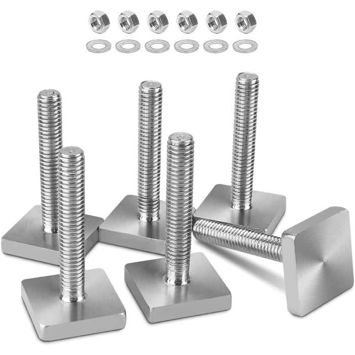 Adaptateurs Rainure En T Lot De 6 Adaptateurs De Rainure En T M8 - En Métal - Avec écrou à Poignée En étoile Et Rondelles, Pour Coffre De Toit Vis Rainure T M8x35 Mm Barre Toit Barres De Toit VOLKSWAGEN t6 1 CALIFORNIA 2019 AUJOURD'HUI Adaptateur pour rainure en T 20x24 pour coffre de toit G3 - Contenu : 4... Contenu de la livraison : 6 vis à rainure en T. Kit d'emballage : adaptateur de rainure en T. Il y a 8 pièces au total, l'ensemble est équipé de 6 écrous moletés M8, 6 rondelles et 6 écrous pour répondre à vos besoins quotidiens. Avec une surface d'appui suffisamment grande pour résister à suffisamment de pression sur le toit, c'est un accessoire de porte-bagages idéal pour les longs voyages., 2., Glissières pour porte-bagages et porte-bagages ou autres adaptateurs à rainure en T, tels que barres de toit, porte-vélos, porte-skis, coffres de toit, paniers de toit, limiteurs de charge, etc. Dimensions : fixation du coffre de toit diamètre du filetage M8, longueur du filetage 35 mm, rondelle 1,2 x 0,1 cm et écrou 1 x 0,5 cm, veuillez vérifier votre taille avant d'acheter. Matériau durable : fabriqué en acier inoxydable, résistant à la rouille, à haute résistance et à la corrosion, adapté pour une utilisation en extérieur, ne craint pas le soleil et la pluie, créant un environnement sûr et confortable pour votre voyage. Largement utilisé : support de coffre de toit convient aux barres de toit fixes, aux barres de toit, aux coffres de toit, aux paniers de toit, aux vélos, aux équipements de ski, aux limiteurs de charge et peut être utilisé dans d'autres situations où un adaptateur en T est nécessaire. Tasseau pour rainures en T (DIN 508) norme d’usine rainure T 12 mm M8