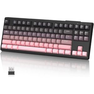 Ergonomique et largement compatible: La conception ergonomique des touches à bille et du support de pied à double section réduit la charge sur vos poignets, rendant la frappe plus confortable que jamais. Clavier Rétroéclairé Arc-en-ciel Clavier Gaming MAMBASNAKE M87 TKL - Sans Fil Bimode, Rétroéclairé Arc Clavier Rose Schéma de couleurs rétro Clavier mécanique bimode Bluetooth RGB à 87 touches pour ordinateurs de... Batterie rechargeable: Ce clavier de jeu sans fil dispose d'une batterie au lithium intégrée de longue durée. Profitez de la connexion sans fil plus longtemps grâce à la batterie rechargeable au lithium haute capacité de 4 000 mAh qui dure des mois avec les lumières éteintes. Clavier Bluetooth Avec Pavé Tactile, Clavier Sans Fil Portable, Clavier... Basculez entre la connexion par défaut de 2,4 GHz et la connexion Bluetooth 5., 0 en commutant le commutateur du clavier ; Le récepteur sans fil 2,4 G est stocké en toute sécurité au bas du clavier du support. Connexion sans fil double mode : clavier de jeu M87 prenant en charge la connectivité Bluetooth 5., 0 et 2,4 GHz. Clavier rétroéclairé arc-en-ciel : le rétroéclairage arc-en-ciel illuminera votre zone de jeu pour augmenter l'atmosphère de jeu et rendre votre jeu plus intéressant. Clavier Gaming MAMBASNAKE M87 TKL 87 Touches sans Fil bimode Vous avez la possibilité de connecter jusqu'à 2 appareils différents en mode clavier Bluetooth et de basculer facilement entre eux. Vous pouvez également régler les modes d'éclairage, la luminosité ou le fermer selon vos besoins.