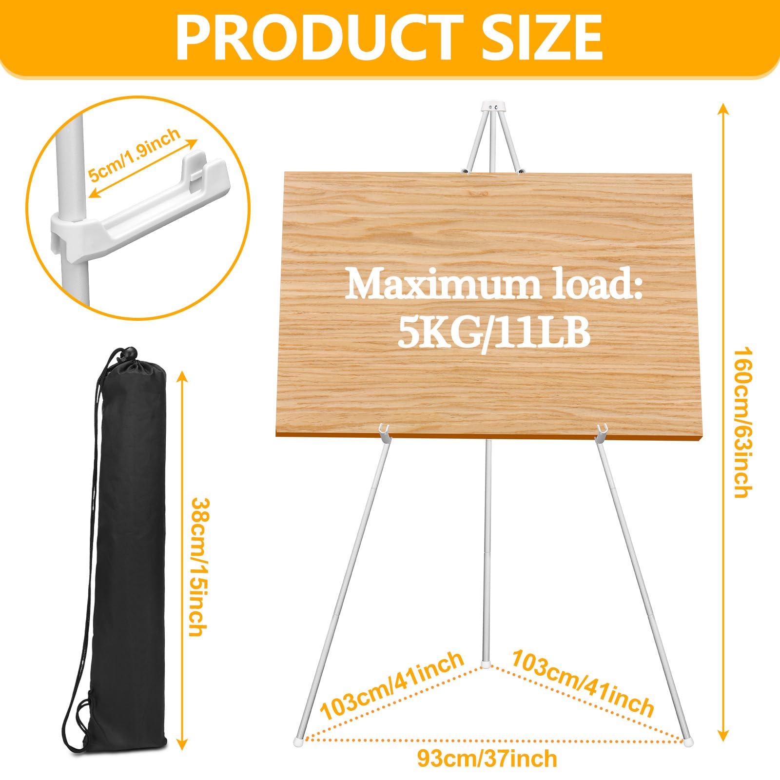 Il se rétracte en tirant et en repliant. Le chevalet de 160 cm de haut ne mesure que 37 cm de long lorsqu'il est plié pour un rangement et un transport faciles et prend moins de place. Facile à... Le système unique de réglage à double boucle permet de verrouiller rapidement la hauteur idéale tout en maintenant une stabilité optimale pour éviter tout glissement accidentel du chevalet pendant l'utilisation. Il ne nécessite aucun outil ni accessoire supplémentaire. Gender Reveal Decoration AFFICHAGE CHEVALET MARIAGE Signes Peinture Art Chevalet Trépied Pliable Tableau Liege Que vous peigniez debout ou que vous exposiez des affiches, vous trouverez l'angle de vue le plus confortable. Sa capacité de charge d'environ 5 kg permet de supporter de manière stable des planches à dessin, des affiches, des panneaux publicitaires, etc. HAUTEUR RÉGLABLE: Le Chevalet de Présentation est doté d'une structure à double boucle. Livré avec un sac de rangement arrière, il est plus pratique à transporter. DESIGN ÉPURÉ: Son aspect blanc pur classique est simple et élégant, et s'intègre parfaitement à diverses occasions, telles que les mariages, les expositions d'art, les promotions dans des centres commerciaux, la décoration de cafés, etc. AUCUN OUTIL REQUIS: Le Chevalet Peinture métallique est doté d'une corde élastique et d'un tube pliable. L'assemblage se fait en 10 secondes, ce qui permet un gain de temps et d'efforts. La hauteur maximale réglable est de 160 cm. Que vous peigniez debout ou que vous exposiez des affiches, vous trouverez l'angle de vue le plus confortable évitant ainsi tout risque de basculement. Que vous soyez peintre, photographe, enseignant, organisateur de mariage ou commerçant, vous pouvez l'utiliser pour présenter vos œuvres ou vos informations publicitaires. VSWN 160cm H Bos Tréped Présentor Chevalet Pour Sgne de Marage