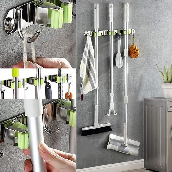 Porte-outils mural robuste en métal avec 4 fentes et 5 crochets... Matériau : Acier inoxydableTaille : 43 cmNombre d'étagères : 1Durabilité inégalée et maintien sécurisé : Notre support mural pour balais est conçu pour durer. Fabriqué à partir de matériaux robustes et résistants à la rouille, il surpasse de loin les alternatives en plastique fragiles. Le support de balai intégré est doté de clips de maintien très élastiques et sécurisés... Support Balai Porte Accessoire,MENGNI-Étagère De Rangement Murale En Plastique,support De Produit De Douche Porte Balais Mural Support mural pour balais et serpillères, pour cuisine et salle de bain