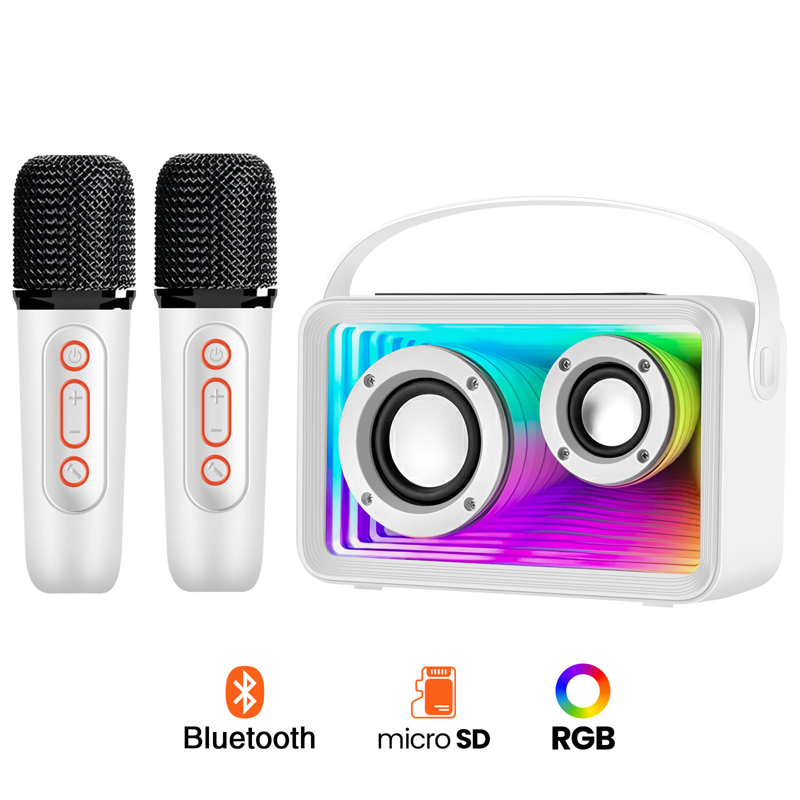 Autonomie sur batterie : environ 6 heures Dotée d'un éclairage vibrant et d'un micro à effets vocaux, elle est parfaite pour les fêtes à la maison. Ses 10 effets lumineux différents illuminent votre espace avec éclat, créant une ambiance festive à chaque occasion. Port de charge : USB-C | Câble de chargement USB-C/USB-A fourni Lancez vos musiques préférées avec sa fonction sans fil et jumelez plusieurs enceintes en TWS pour une expérience audio encore plus immersive. Transformez vos soirées en véritables concerts avec ce micro sans fil magique ! Grâce a ses effets vocaux amusants (bébé, diva, fée, homme, normal, réverbération), amusez-vous a modifier votre voix d'une simple pression de bouton ✅ Le microphone sans fil vous permet de libérer votre créativité avec ses 4 effets vocaux et d'ajouter une touche personnelle à vos performances de karaoké Microphone sans fil avec 4 effets vocaux | Fonction mute Points forts Fonction sans fil Enceinte Portable 15W MOOOV 477357 Enceinte Karaoke Bluetooth Avec Micro Kit Complet Sans Fil Pour Enfant Micro Sans Fil Effets Vocaux 4 Modèles Mini Enceinte Bluetooth LED avec Micro Sans Fil Kit Karaoke Portable Avizar Noir - Enceinte sans... ✅ Lancez vos musiques préférées avec sa fonction sans fil et jumelez plusieurs enceintes en TWS pour une expérience audio encore plus immersive Dotée d'un éclairage vibrant et d'un micro à effets vocaux, elle est parfaite pour les fêtes à la maison Temps de charge : 3 à 4 heures ✅ Avec une puissance musicale totale de 15W, vous bénéficiez d'un son clair et net, tandis que sa batterie rechargeable intégrée garantit jusqu'à 6 heures d'autonomie Ibiza - KARAHOME-BK - Enceinte Karaoke Lumineuse sur Batterie, avec ✅ Ses 10 effets lumineux différents illuminent votre espace avec éclat, créant une ambiance festive à chaque occasion. 10 effets lumineux différents Lecteur de carte microSD | Port USB-A pour lire une clé USB | AUX-IN : jack 3,5 mm L'enceinte est équipée d'un lecteur de carte SD, d'un port USB-A et d'une entrée auxiliaire, offrant une polyvalence maximale pour la lecture de musiques à partir de diverses sources.