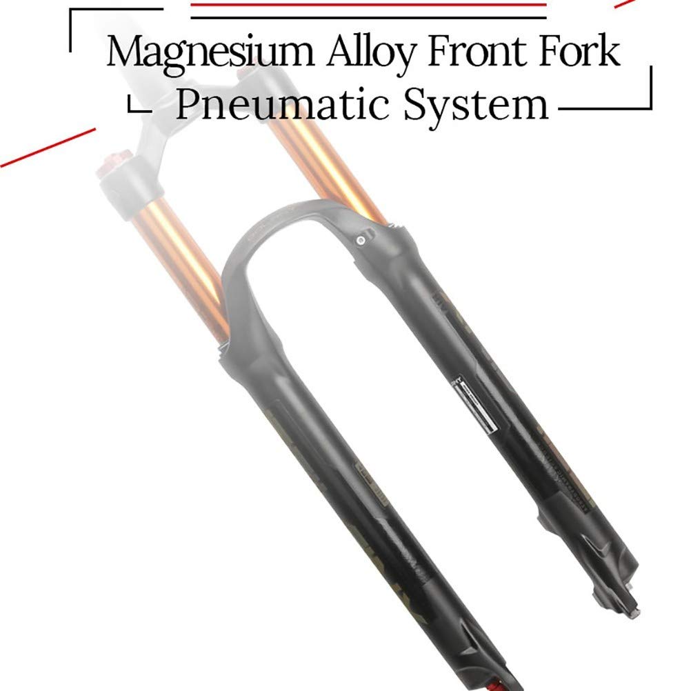 Fourche D'amortisseur de Suspension VTT 26 27,5 29 Pouces, Ultraléger Alliage de Magnésium 1-1/8 Vélo air Fork Voyage 140mm (Couleur : Tapered Tube, Size : 27.5 inch - 130mm Fourche Vtt MTBforks VTT Fourche 26 27.5 29 Inch Ultra-léger Magnesium Alloy Vélo De Montagne Air Suspension Amortisseurs 100MM Fourche Suspension Magnésium Télécommande ZERONE Fourche avant VTT 120mm Amortisseur Air 26 pouces Blocage à... Alliage de magnésium avec marque d'impression, plus léger que l'aluminium mais plus solide que l'acier. Fabriquée en alliage de magnésium, cette fourche offre une résistance exceptionnelle sans poids, améliorant les performances du vélo tout en améliorant l... Le bouton de réglage de la vapeur vous aide à conquérir une variété de terrains. Le design renforcé de l'arche assure une force équilibrée et stable.