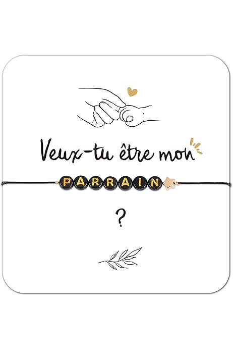 L’ensemble est soigneusement présenté, prêt à être offert lors d’un baptême, d’un anniversaire ou d’un événement familial. Coffret avec ruban pour Annonce Parrain/Marraine – Coffret Gravé en Bois – Demande Surprise Originale – Cadeau Personnalisé Une manière douce et sincère de faire votre demande de parrain, 2., Design Naturel et Durable : La plaque en bois clair est gravée avec soin pour conserver son éclat au fil du temps. Annonce Marraine Filleul Souvenir Boîte Cadeau Veux-tu être Ma Maraine? | Beige | Fleurs Séchées | Marraine | Parrain Bracelet Ajustable Parrain Marraine Conçu pour transmettre vos émotions avec élégance, ce coffret associe naturel, douceur et symbolisme. Ce matériau durable conserve son apparence dans le temps et représente le lien solide entre le filleul et son parrain. Veux-tu être mon parrain carte - Cadeau parrain - Annonce parrain marraine. ₹ 408. 5 out of 5 stars. avec ou sans enveloppe: avec enveloppe. The... Un coffret prêt à offrir qui véhicule émotions et gratitude, idéal pour marquer un moment unique La carte incluse est imprimée sur un papier épais et fournie avec une enveloppe assortie. Set Cadeau Marraine Avec Carte Personnalisable Et Bracelet Cœur - Demande Veux-Tu Être Ma Marraine | Pour Baptême, Anniversaire. 4.9/5 Lire les 148 avis Son style sobre et symbolique permet au parrain de le porter au quotidien en souvenir de ce rôle important. La texture naturelle du bois et les finitions soignées en font un souvenir esthétique et intemporel. Ce coffret est idéal pour une demande de parrain ou annonce marraine, mais aussi comme cadeau de remerciement après la cérémonie. Le coffret fKiZanthene “Veux-tu être mon parrain ?” est une façon tendre et personnelle de poser cette question si spéciale. Léger et confortable, il peut être porté au quotidien en signe de lien affectif entre filleul et parrain, 4., Carte et Enveloppe Incluses : Le coffret contient une jolie carte imprimée et un bel enveloppe assortie, permettant d’ajouter un mot personnel ou une photo pour rendre votre annonce parrain marraine encore plus touchante, 5., Idée Cadeau Symbolique : Parfait pour une annonce parrain, une demande marraine ou un souvenir de baptême.