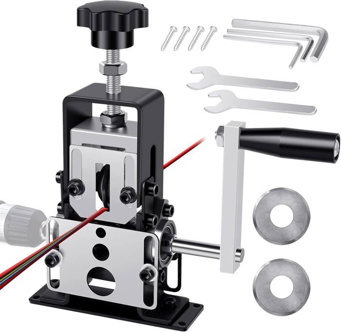 Type : machine à dénuder TONYSA Automatique Denudeur de Cable Electrique pour câble 1-25 mm... 💡Conception à trous multiples: Denudeur cable electrique Réglage facile de la profondeur de coupe de la lame, réglage automatique de 1 à 25 mm Avec cet outil, vous pouvez facilement dénuder des fils quel que soit leur diamètre. Liste de colisage : 1 × Dénudeur de câble manuel 1 × Ensemble de clés à douille 1 x Manuel de l'utilisateur Dénudeur Câble électrique Réglable Denudeur Cable Electrique - Machine A Denuder- Convient à Une Large Outils Et Testeurs 📍Dénudage facile des fils: Le dénudeur manuel de câbles est doté d'une manivelle facile à utiliser qui actionne sa lame en acier durable pour retirer l'isolant en plastique et en caoutchouc des vieux câbles. Caractéristiques du produit: 1., Cette pince à dénuder manuelle permet de récupérer facilement les fils de cuivre. Plages de dénudage : 1-25 mm ✔Dénudage de précision des câbles: Notre dénudeur de câble électrique est robuste et durable, avec des lames tranchantes pour un dénudage précis, tournez le bouton supérieur pour régler la distance entre la lame et l'arbre en fonction des différentes tailles de câble, retirez l'isolation sans effort en tournant la manivelle. Il est équipé de trous de montage sur la base, vous permettant de le fixer solidement à l'établi pour une utilisation plus stable. Instructions d'utilisation: Pour utiliser cet outil, suivez simplement ces étapes simples : réglez la hauteur de la lame, insérez tout le fil dans le trou d'alimentation, puis tournez la manivelle ou allumez le foret (si vous en avez fixé un à une pince à dénuder). Matériau : alliage d'aluminium Dénuder les fils sans effort : Dénudeur de câbles manuel est équipé d'une manivelle facile à manipuler, actionner sa lame en acier durable, pour retirer l'isolation en plastique et en caoutchouc des vieux câbles électriques Elle est fabriquée à partir de matériaux durables qui peuvent résister à des environnements difficiles. 💎Large application: Cet outil manuel de dénudage de câble est largement utilisé dans diverses industries pour traiter les faisceaux de câbles, le démontage de câbles, et bien d'autres applications, adapté aux fils de câble, câbles optiques, câbles multiconducteurs, fils torsadés, fils d'aluminium, fils souples, fils durs, fils de cuivre, fils gainés et autres fils de taille appropriée. Denudeur Cable Electrique, Denudeuse De Cable Electrique, Machine À