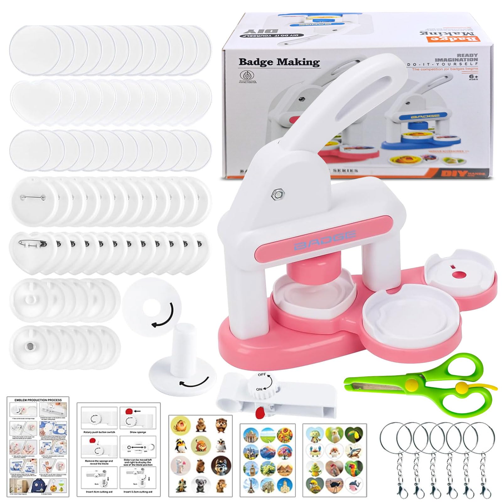 Test : machine à badges DIY Badge Maker 3 tailles La Machine à Bouton est légère, facile à utiliser et à transporter, ce qui vous permet de fabriquer facilement des badges en extérieur. Machine A Magnet Machine à Badges 3-en-1 De 25/32/58 Mm, Presse à Badges Avec 300 Kits De Consommables Et Livre Magique Panda, Machine à Fabriquer Des Badges Résistante, Pour Fabrication De Badges à Épingle Machine A Badge Personnalisée Conception Innovante : La machine à fabriquer des badges boutons ne nécessite aucune installation et est prête à l'emploi. Nouvelle Machne à rouler les flets à grande vtesse Machne à... Version améliorée trois-en-un : explorez différentes tailles avec une seule machine ! Notre machine à boutons peut réaliser des badges de 25/32/58 mm. Il peut... Il suffit d'insérer les pièces du badge, le motif et le couvercle dans la machine dans l'ordre, d'aligner le tout et d'appuyer fermement. Matériaux de Haute Qualité : Nos machines à fabriquer des badges sont non seulement esthétiques, mais elles sont également fabriquées en plastique ABS solide et résistant, avec une finition soignée et des bords lisses et arrondis. Même les débutants peuvent facilement maîtriser l'utilisation de la machine à fabriquer des badges. Il répondra parfaitement à vos besoins en matière de bricolage et vous permettra également de créer des badges personnalisés avec différents motifs. Le kit de DIY Presse Badge est idéal pour les enfants ou les amateurs d'artisanat, et peut être offert en cadeau à vos enfants ou à vos amis. Kit de Fabrication de Badges : Contrairement aux machines à badges disponibles sur le marché, notre kit DIY comprend 12 sets de badges de 55 mm, 12 sets de badges en forme de cœur, 6 sets d'aimants pour réfrigérateur et 6 sets de porte-clés, ainsi que des accessoires tels qu'un mode d'emploi et un cutter circulaire.