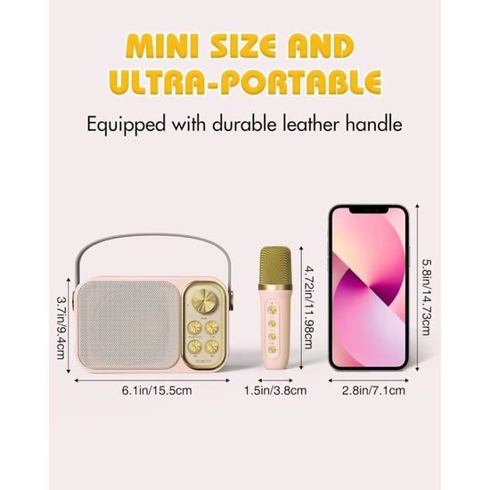 🌟 Les projecteurs sur notre machine de karaoké : 1., Son supérieur : notre machine dispose d'un haut-parleur puissant pour donner vie à vos morceaux préférés avec une qualité audio cristalline., 2., Deux microphones : chantez des duos ou profitez de batailles de chant avec deux microphones inclus, assurant un souffle pour tout le monde à vos rassemblements., 3., Design convivial : facile à installer et à utiliser, soutenu par un manuel d'utilisation complet, rend vos soirées karaoké sans tracas. Machine de karaoké, Haut-Parleur de karaoké Bluetooth avec 2 🔗Connexion stable, compatibilité étendue :Le microphone sans fil se connecte automatiquement aux haut-parleurs sur une distance allant jusqu'à 32 pieds (environ 10 mètres), où que vous soyez. Haut-parleur Karaoké Avec Micros Sans Fil COZHYESS Machine De Karaoké Avec 2 Micro Sans Fil, Haut Kit Karaoké Famille Fête 🌟 Vous en avez assez des expériences de karaoké ternes ? Pourquoi choisir notre mini machine de karaoké plutôt que d'autres ? Faisons les plus hauts ! 2 câbles de données pour une connectivité facile. achine de Karaoké avec 2 icro sans Fil, Haut-Parleur Bluetooth Portable, Dispose 7 Effets... 🎁Cadeau de qualité pour divertissement familial :Ce n'est pas simplement un appareil audio, mais aussi un cadeau parfait. Profitez d'un son HiFi de qualité pour animer vos réunions familiales. Les meilleures machines a karaoke 2024-2025 - Guide de l'animation et du spectacle vivant De plus, un service de remboursement sans souci de 2 ans et un service client 24h/24, 7j/7 Prêt à atteindre les notes aiguës ? Cliquez sur « Ajouter au panier » maintenant, et nous le livrerons gratuitement à votre porte Transformez votre espace en scène de karaoké avec notre mini machine de karaoké., 1., 🎤 Matériaux de qualité supérieure, son de haute qualité :Cette mini-machine de karaoké utilise des matériaux ABS sûrs et fiables, garantissant sa robustesse et sa durabilité. Un manuel d'utilisation pour une installation sans effort. 🎶Effets sonores personnalisés, design portable et compact :Le microphone sans fil amélioré vous permet d'ajuster individuellement le volume, les effets de réverbération et la musique. Améliorez vos soirées karaoké avec notre mini machine de karaoké. Son design compact et léger en fait un compagnon de voyage idéal pour profiter de la musique à tout moment.
