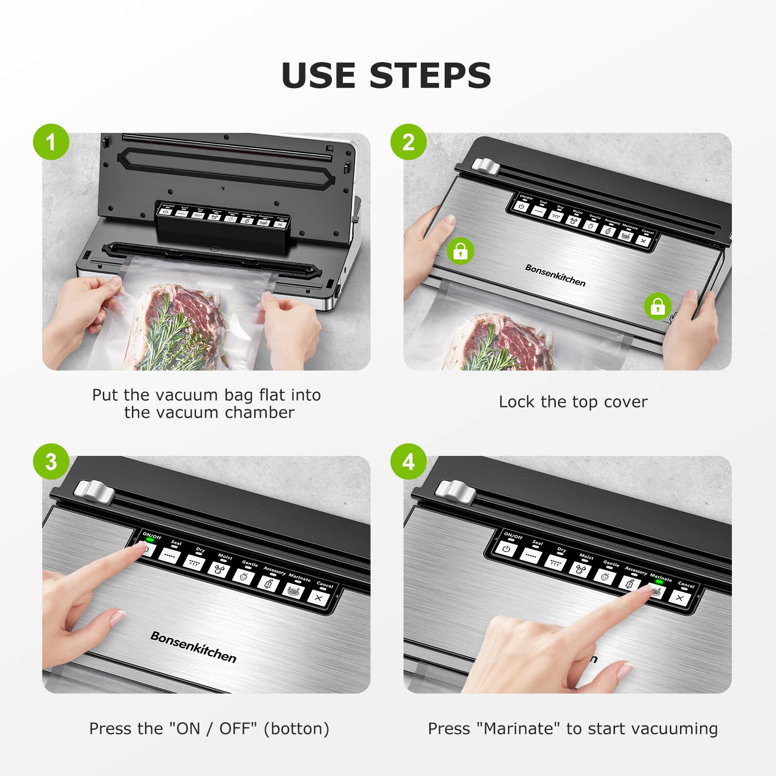 Bonsenkitchen Machine Sous Vide Alimentaire, Cutter Intégré et Rouleaux de Sacs et Kit de... Kit de démarrage complet - comprend 1 scellant sous vide, 1 manuel d'utilisation, 1 rouleau sac sous vide (28 x 600 cm), 20 sacs sous vide (15 x 25 cm), 20 sacs... Rouleau Sous Vide Alimentaire Bonsenkitchen Machine De Mise Sous Vide Avec Coupeur Et Machine Sous Vide Bonsenkitchen VS3802, ¿Qué nos parece? | Opiniones y análisis