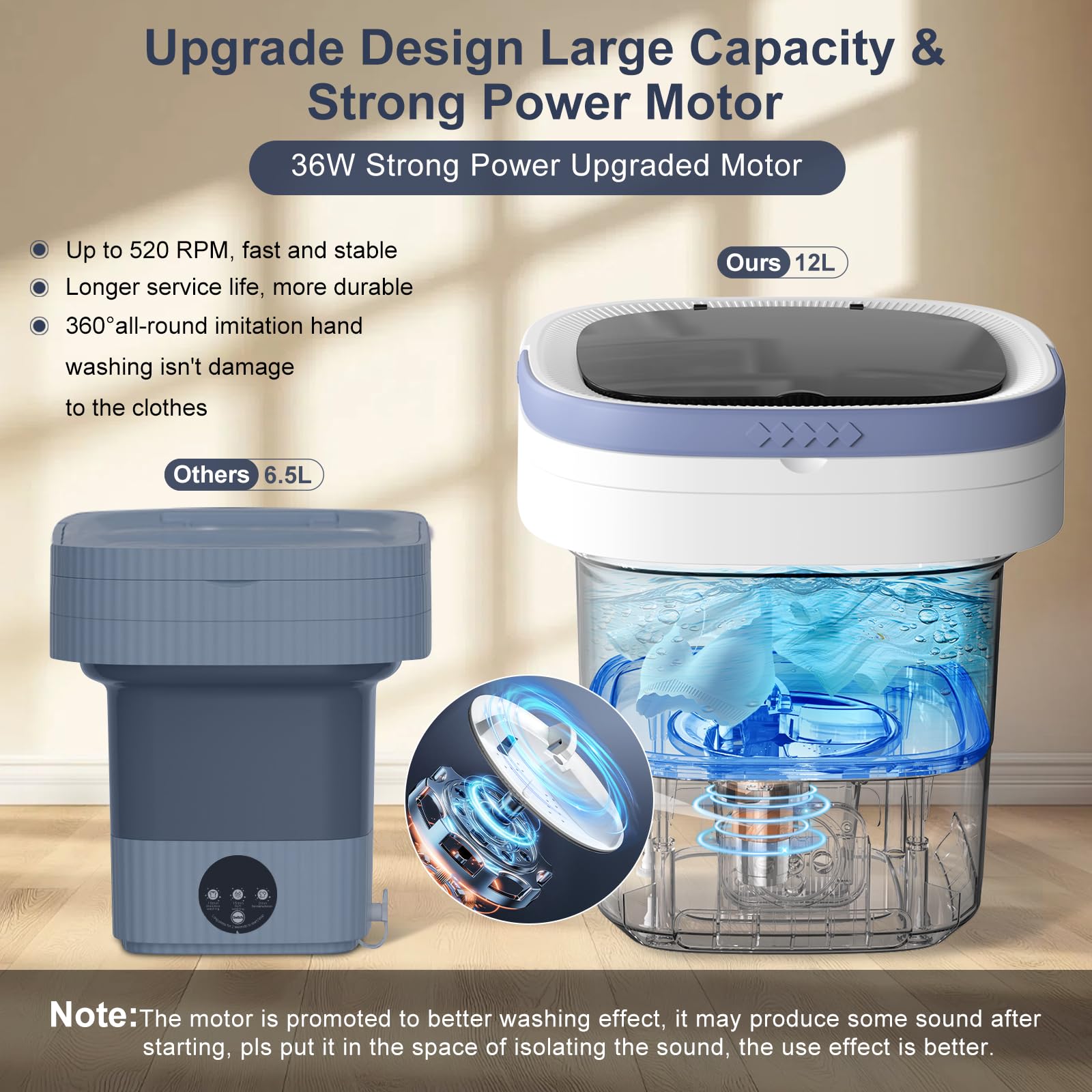 asddcavvf Mini Laveuse et Sécheuse Portable Sans Fil Capacité 1L Machine à Laver pour Petits Vêtements sous-Vêtements Chaussettes Vêtements de Bébé Porte-Serviettes pour Salle de Bain Tapis de Bain Mini Laveuse Pliable, Mini Machine À Laver Pliable Large Applicabilité... Machine Lavage Portable 3 Modes 12v 36w Dortoir Machine à Laver Portable, Mini Laveuse, Machine à Laver Pliable De Grande Capacité De 11 L. Nettoyage En Profondeur Des Sous-vêtements, Vêtements De Bébé Et Autres Petits Vêtements. Convient Pour Les Machine à Laver Dortoir Voyage Il est spécialement conçu pour laver les vêtements intimes ou les tissus délicats des bébés, et préserve chaque tendresse et chaque pureté avec un soin méticuleux., Détails 1., Orifice et tuyau de drainage : L'orifice de vidange bas et le tuyau de vidange équipé sont pratiques pour vidanger après le lavage sans avoir à verser de l'eau manuellement., 2., Panier de vidange : Il permet d'évacuer l'humidité des vêtements, ce qui évite de les essorer manuellement. Il convient au nettoyage des petits vêtements tels que les vêtements de bébé, les sous-vêtements ou les chaussettes. Mini laveuse avec panier de vidange Portable pliable Machine à laver pour appartement. 35,79€. AB43-6L Mini laveuse avec panier de vidange Portable pliable... Application Il est idéal pour les appartements, les dortoirs, les caravanes, les hôtels, les voyages ou le camping. Spécifications Modèle : X13 Style : moderne Moderne Matière : ABS, PP Type d'installation : Autonome Type de moteur : Moteur en cuivre pur Source d'alimentation : Cordon électrique Type de prise : Norme européenne Entrée de l'adaptateur : 220V Modes de nettoyage : 3 (3 minutes, 5 minutes, 10 minutes) Tension nominale : 12V Puissance nominale : 36W Bruit : Environ 30-40dB Capacité : 12L/12., 68qt Taille du produit plié : 30*30*16cm/11., 8*11., 8*6., 3in Taille du produit : 30*30*33cm/11., 8*11., 8*13in Poids net : 1., 8kg/3., 97lbs 📦Le paquet comprend 1* Mini machine à laver pliable 1* Adaptateur de courant 1* tuyau de vidange 1* Panier de vidange ❗Remarques 1., Veuillez noter que l'appareil ne convient pas au nettoyage des jeans, des jupes longues, des draps de lit, des peignoirs, des manteaux et d'autres vêtements volumineux., 2., Remplissez la machine à laver avec 2/3 d'eau pour obtenir un meilleur effet de lavage. 【Un soin extrême】:l'appareil adopte une conception de roue de lavage à la main simulée, combinée à une vitesse de lavage uniforme et à une fonction de lumière bleue, qui retourne délicatement les vêtements tout en éliminant efficacement les taches. 【Conçu pour durer】:Machine à Laver Portable Fabriqué en ABS et PP, ce produit ne s'use ni ne se déforme facilement, garantissant une utilisation à long terme.