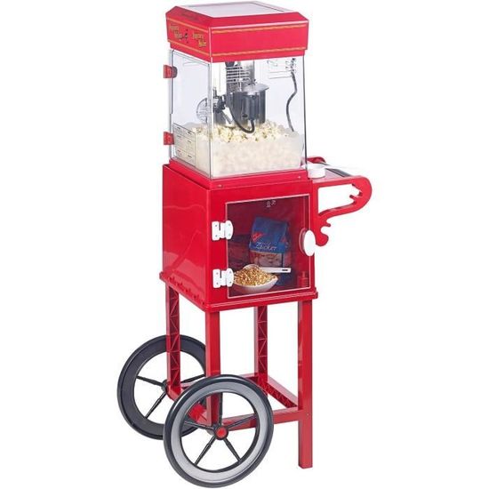 Puissance – grâce à 1500 W jusqu'à 5 kg de pop-corn/h Machine à pop-corn, 1Pc 1200W Mini machine à pop-corn électrique à usage domestique [124... Vous pouvez également stocker des ingrédients tels que des grains de maïs, de l'huile, du sel et des épices et avoir toujours tous les ingrédients nécessaires à portée de main. La machine à pop-corn est facile à entretenir car elle est fabriquée en acier inoxydable de haute qualité et en verre trempé. Chariot Pop-corn Rétro Machine à Pop-corn - Chariot Devis Sous 1h Design Rétro Rouge Inox Une machine à pop-corn professionnelle avec un chariot élégant Pour une utilisation mobile, ce chariot à pop-corn est doté de deux grandes et de deux petites roues orientables à 360° et dotées d'un frein de blocage. Une sensation croustillante comme au cinéma avec cette machine à pop corn pour 5 kg de pop corn par heure Cette machine à pop corn fonctionne avec une puissance de 1500 W et atteint rapidement sa température de fonctionnement. Utilisation sûre - revêtement antiadhésif, système de mélange et protection contre la surchauffe En plus de la fonction de maintien au chaud, la machine à popcorn dispose également d'un éclairage. La fermeture maintient le pop-corn en toute sécurité à l'intérieur et peut être ouverte rapidement avec peu d'effort. Pour le pop-corn sucré, utilisez la température inférieure de 195 °C, pour le pop-corn salé, nous recommandons 235 °C. Caractéristiques principales : Polyvalence – avec 2 températures : 195 °C pour le popcorn sucré et 235 °C pour le popcorn salé Machine à pop cor, Fun pop 4 oz idéale pour produire du popcorn avec une capacité modérée et un entretien simplifié grâce à la marmite en inox : - Capacité : 113 g de maïs par fournée, avec une production de 20 fournées par heure L'appareil vous permet de produire 16 l de pop-corn par heure (environ 5 kg/h) - idéal pour un usage commercial, pour produire rapidement beaucoup de pop corn et le maintenir au chaud. Sécurité d’utilisation – revêtement antiadhésif, système d’agitation et protection contre la surchauffe Location Machine à Pop Corn sur chariot