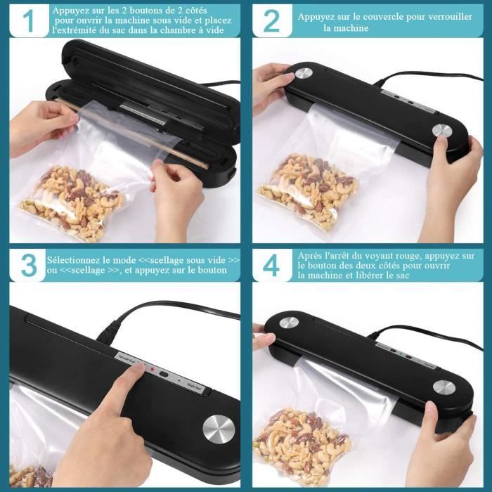 Scellage Sous Vide Automatique Alimentaire - Personnalisation De Vos Portions Machine Sous Vide Machine sous vide professionnelle à cloche MAX XL-DD Boss spécial aliments longs et épais Appareil De Mise Sous Vide Professionnel Sous Vide Machine Automatique... Appuyez simplement sur le bouton pour un scellage hermétique sans réglages complexes, rendant le stockage en cuisine rapide et sans tracas La fonction d'aspiration manuelle préserve délicatement les liquides et les aliments fragiles comme les baies et les herbes, gardant tout plus frais plus longtemps avec un fonctionnement sans effort Le système de conservation efficace réduit le gaspillage alimentaire et maintient une saveur optimale, vous aidant à économiser de l'argent et à profiter d'ingrédients plus frais tous les jours 【Fonctionnement à un toucher】 Le scelleur sous vide à un toucher permet une conservation des aliments sans effort avec un fonctionnement entièrement automatique. 【Remarque】 Débranchez toujours avant de nettoyer. Lorsqu'il n'est pas utilisé, débranchez et insérez la carte de support (ne verrouillez pas le couvercle). Éloignez les enfants pendant le fonctionnement pour prévenir les accidents L’emballeuse sous vide avec commandes manuelles vous permet de décider exactement quand arrêter l’aspiration d’air et quand commencer à sceller. Cela facilite la conservation des aliments délicats, humides ou volumineux