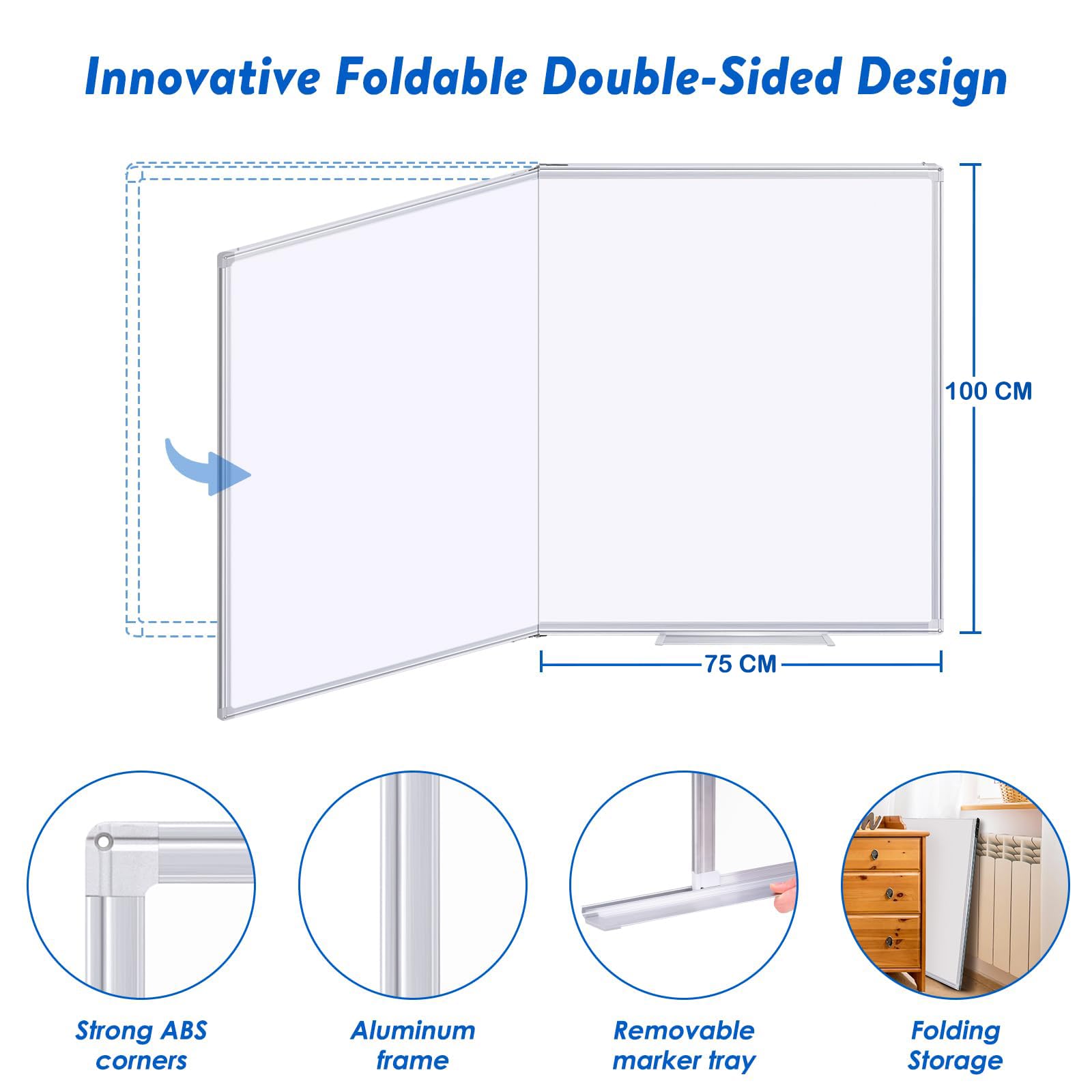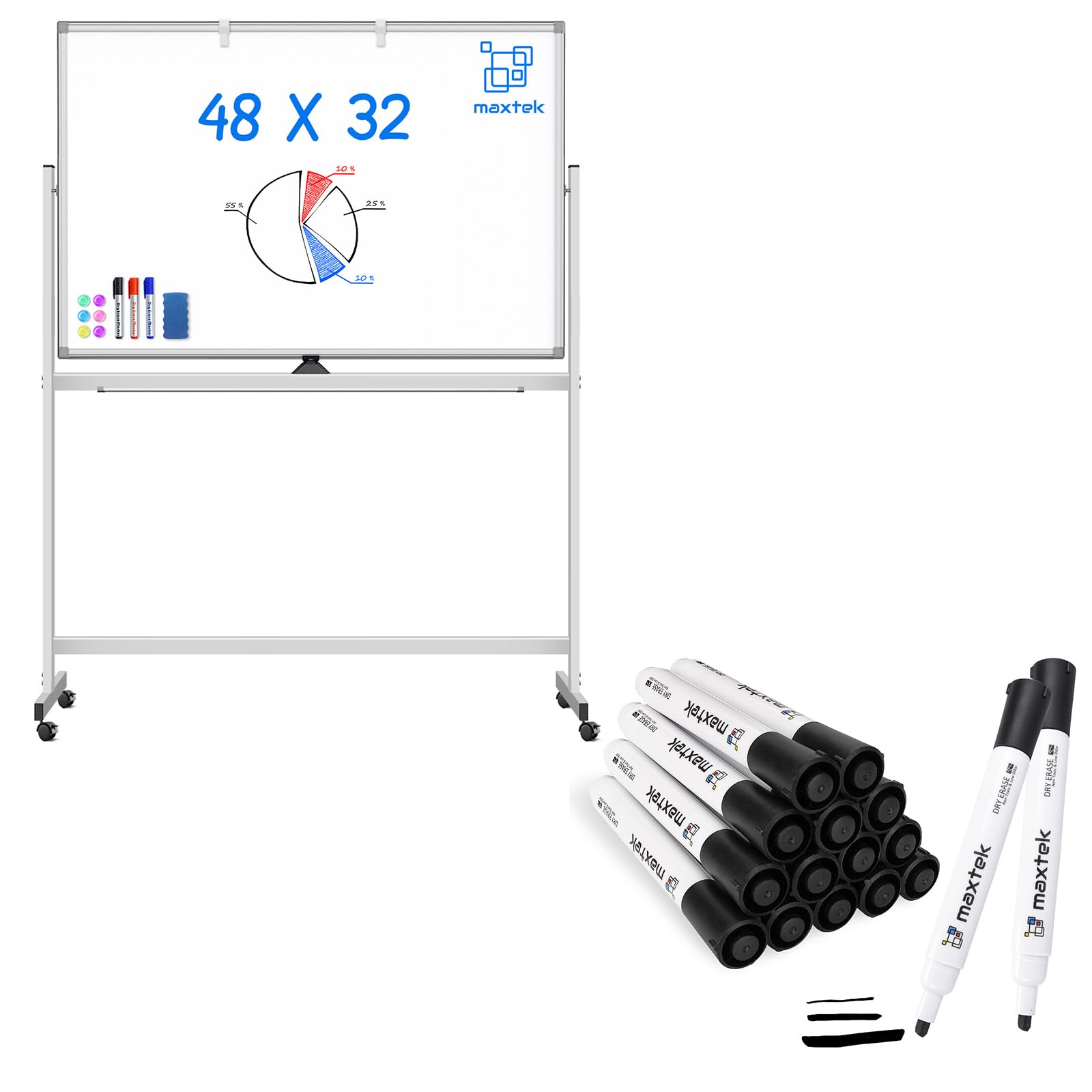 Tableau Blanc Effaçable sur pied 100 x 60 cm, Surface d'écriture Hauteur Réglable : Antidérapant et d’une barre de renfort, ce tableau blanc offre une hauteur ajustable de 100 à 180 cm. Tableau Blanc Sur Pied Réglable Tableau Blanc Magnétique Avec Pieds Réglables | Whitebord Tableau Blanc Mobile 100x70cm Design Professionnel: Allie cadre métallique intégral et revêtement laqué haute densité réduisant de 50% la pénétration des taches, assurant une écriture fluide sans mouvement et un nettoyage sans résidus avec un dos galvanisé anti-traces, adapté aux environnements professionnels pour maintenir une apparence soignée lors des réunions et formations. Chevalet paperboard - Top 10 de 2024 - Coparatif des eilleurs axtek Tableau blanc à roulettes agnétique double face - Tableau blanc... Le timer intégré contrôle précisément les discussions, exercices ou présentations. Des repères précis sur le support permettent un réglage au millimètre près et en un clin d’œil, évitant efficacement l’inclinaison. La surface magnétique retient solidement les documents, notes et graphiques, favorisant la liaison des informations. Équipé de crochets métalliques mobiles pour flipchart, adaptables à tout écart de trous, il agrandit considérablement l’espace de travail – idéal pour les brainstormings intenses. Rapidement pliable, il est facile à ranger et à déplacer, avec un poids de seulement 6,2 kg. Extension Surface : Deux bras latéraux escamotables (65cm chacun) étendent la longueur du tableau blanc de 70cm à 200cm, triplant son aire d’usage.