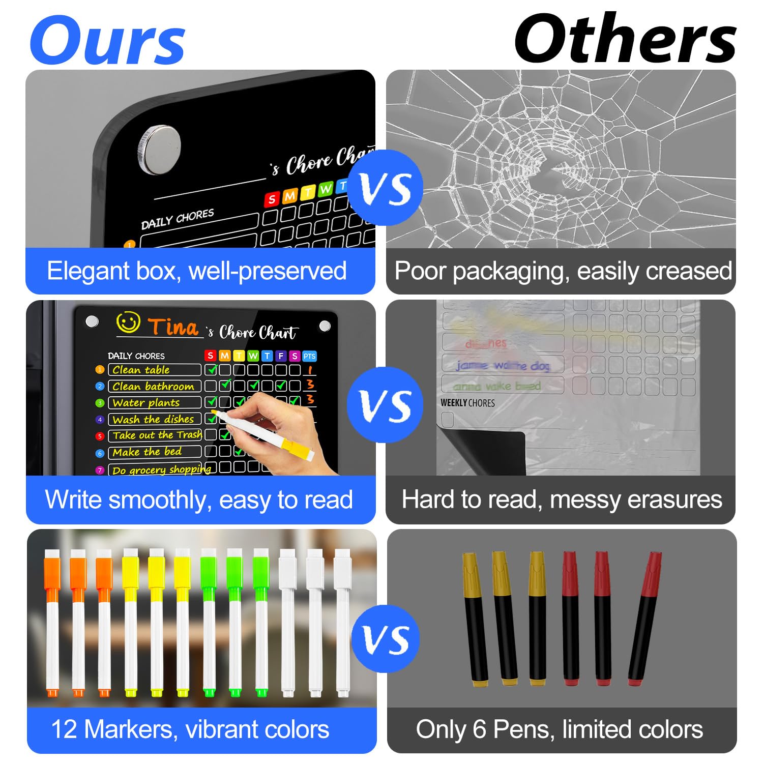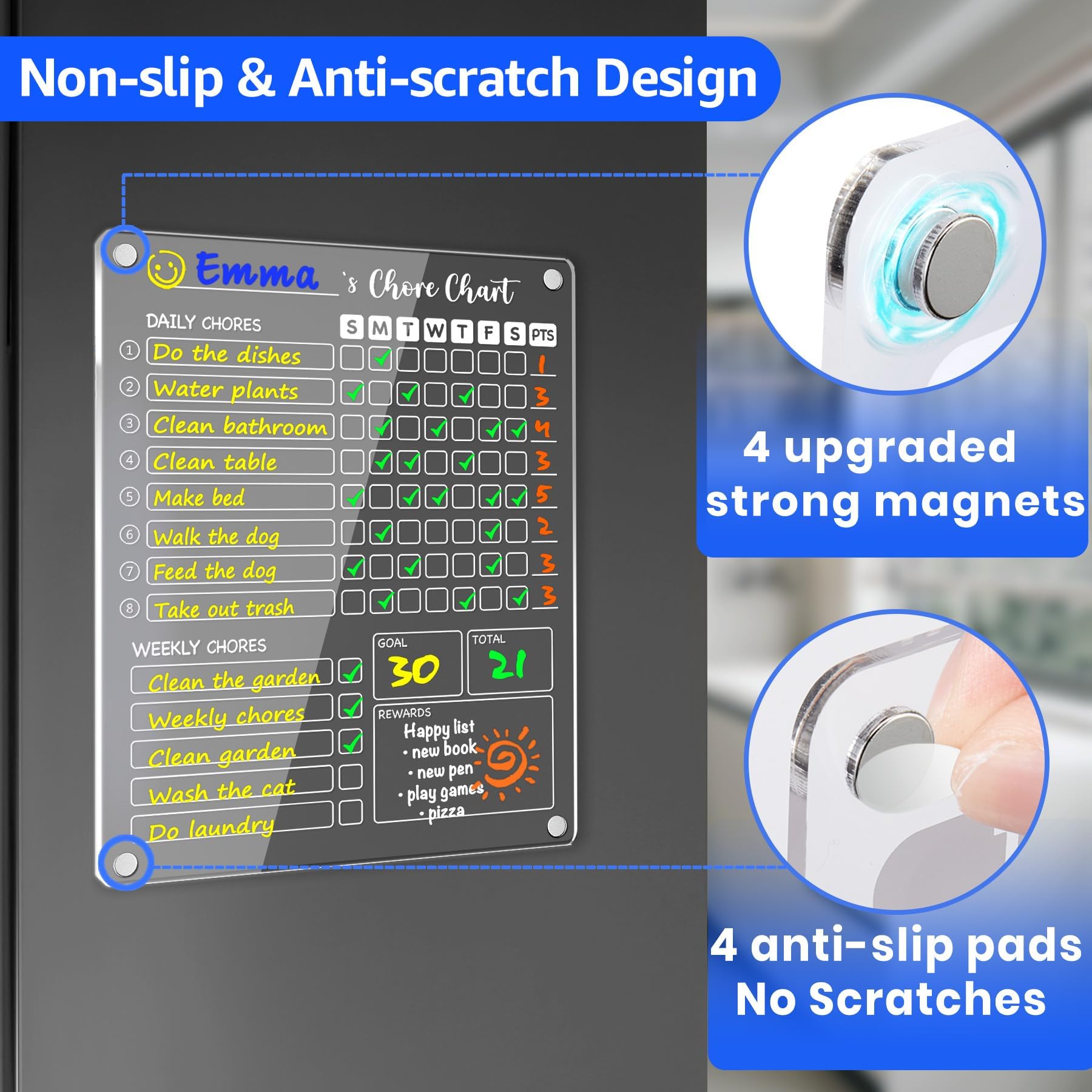 La technologie magnétique avec conception antidérapante assure un siège fixe avec une utilisation quotidienne Organisateur Famille Tâches Ménagères Tableau De Corvée Magnétique En Acrylique Pour Enfants, Tableau De Corvées De Réfrigérateur, Liste De Contrôle Des Tâches Ménagères, Tableau De Responsabilités Pour Adolescents Et Adultes, Tableau De Organisation Enfants Maison Description du produit Tableau Des Tâches En Acrylique Modele de tableau a peindre en acrylique - young planneur Planificateur de tâches dynamique: une table visuelle claire avec un codage couleur animé simplifie les routines quotidiennes et augmente l'initiative des grâce à la motivation Combiné avec 8 solides marqueurs de précision pour l'étiquetage répété dans l'organisation ménage. Travaux de peinture Pour mettre de la couleur dans votre intérieur Ajoutez des touches de couleurs vives à vos murs, vos meubles ou encore à travers des accessoires décoratifs. Cela apportera une ambiance chaleureuse et dynamique à votre espace de vie. Consultez Mon Conseil Brico pour mettre de la couleur dans votre intérieur En raison de la mesure manuelle différente, veuillez permettre la différence de taille de 1 à 2 cm. Sa réutilisable garantit une utilisation , le rendant adapté à chaque membre de la famille pour gérer efficacement ses responsabilités. Ensemble de cadeaux pratiques: L'aide ménagère acrylique polyvalente combine une utilisation pratique avec une présentation festive. Tableau famlal organsaton des tâches et corvées, feulle A4 à mprmer, plannng pour toute Caractéristiques: Nom du produit: graphique de corvée acrylique Matériel: acrylique Spécifications: planificateur + stylo Poids du produit: 1050g Taille du produit: environ 30,4x22., 8 cm / 11,97x8,98 pouces Liste de colisage: Graphique de corvée en acrylique * 1 Pen * 8 Note: En raison de la différence dans les paramètres d'éclairage et d'écran, la couleur de l'élément peut légèrement de l'image. Slip-Structure magnétique à l'épreuve: taille spéciale pour les réfrigérateurs.