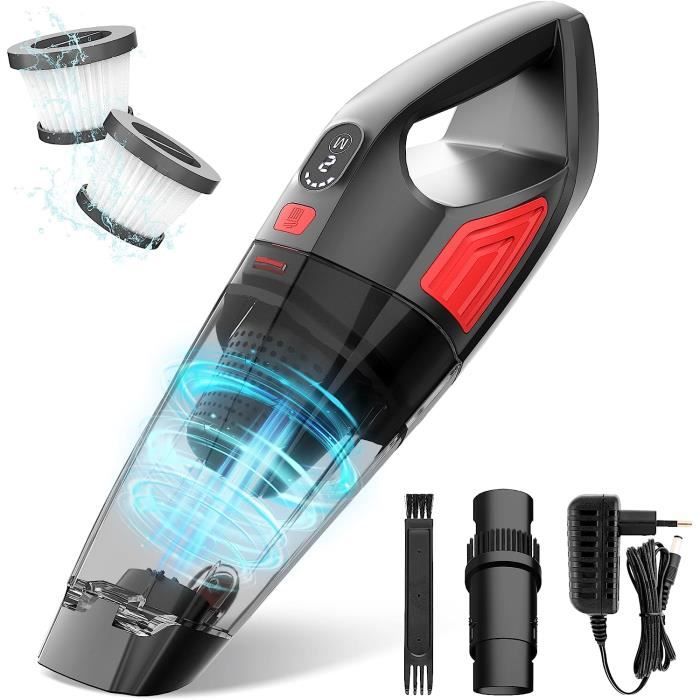 Aspirateur Voiture Puissant 25 KPa Aspirateur Puissant Aspirateur Voiture ThisWorx 110W - Mini Aspirateur Main 12V Avec 3 Embouts - Cordon 5m - Filtre HEPA Aerovac Car Vacuum Aspirateur Main Sans Fil Aspirateur Balai Eziclean® Power Animal 2.0 à Prix Aspirateur À Main, Puissant Aspirateur De Voiture Avec Filtre Hepa... Il est idéal pour une utilisation en voiture (pour aspirer dans la voiture), à la maison et pour un nettoyage rapide. [Filtre HEPA lavable, léger et portable] Le filtre HEPA lavable réduit efficacement les allergènes et assure un nettoyage hygiénique. Facile d'entretien et durable ! [Batterie haute capacité 8000 mAh, longue durée de vie] Notre aspirateur à main sans fil est équipé d'une batterie lithium haute capacité (8000 mAh) qui se recharge complètement en seulement 3 heures et offre 45 minutes d'aspiration puissante. Facile à ranger et à transporter, son bac à poussière de 600 ml assure un nettoyage complet et sans interruption dans la cuisine, le salon et la chambre. [Cadeau idéal] : Notre aspirateur à main est présenté dans un emballage attrayant, ce qui en fait un cadeau idéal pour tous les âges et tous les sexes. Il est parfait pour la Saint-Valentin, la fête des Pères, la fête des Mères, les anniversaires, Noël, le Nouvel An et Thanksgiving. 3 accessoires multifonctions] - Notre aspirateur à main est équipé d'un suceur plat, d'un flexible et d'une brosse pour canapé, ce qui le rend idéal pour les petits espaces en voiture, au bureau ou à la maison