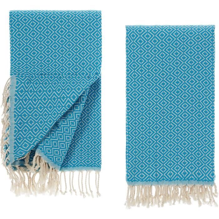 Fouta de Plage Nid d'Abeille 100% coton Grande Taille- Douceur et Taille 100x200 cm, poids environ 380g La Fouta, drap de hamman et sauna est également utilisée en serviette de plage légère, en plaid, en jetée de lit... Jete De Canape Grande Taille Fouta Fait Main - 200 X 100 Cm - Coloris Bleu Turquoise à Rayure Blanc Drap Hamam Léger Nos Foutas sont tissées à plat ou en nid d'abeille en Tunisie près de Sousse et sont de première qualité, 100 % d'un coton trié parmi les meilleurs et sont certifiées par le ministère Tunisien de l'artisanat. Elles acquièrent de plus en plus de douceur au bout de quelques lavages Elles se déclinent en plusieurs tailles : taille 100x200 cm (environ 380 g), taille 200x200 cm (environ 800 g) et taille 200x300 cm (environ 1100 g). Serviette De Plage Bleu Turquoise, Drap De Plage, Fouta Xxl Homme Et... Un grand choix de motifs et de couleurs, vous sont proposés. La taille ne nos Foutas est contrôlée au départ de Tunisie, contrôlée à l'arrivée dans nos locaux et peut de manière exceptionnelle très légèrement varier. Fouta 100% d'un coton trié parmi les meilleurs, doux et absorbant La tenue au lavage et la tenue des couleurs sont parfaites (IMPORTANT : TEMPERATURE DE LAVAGE 30°)